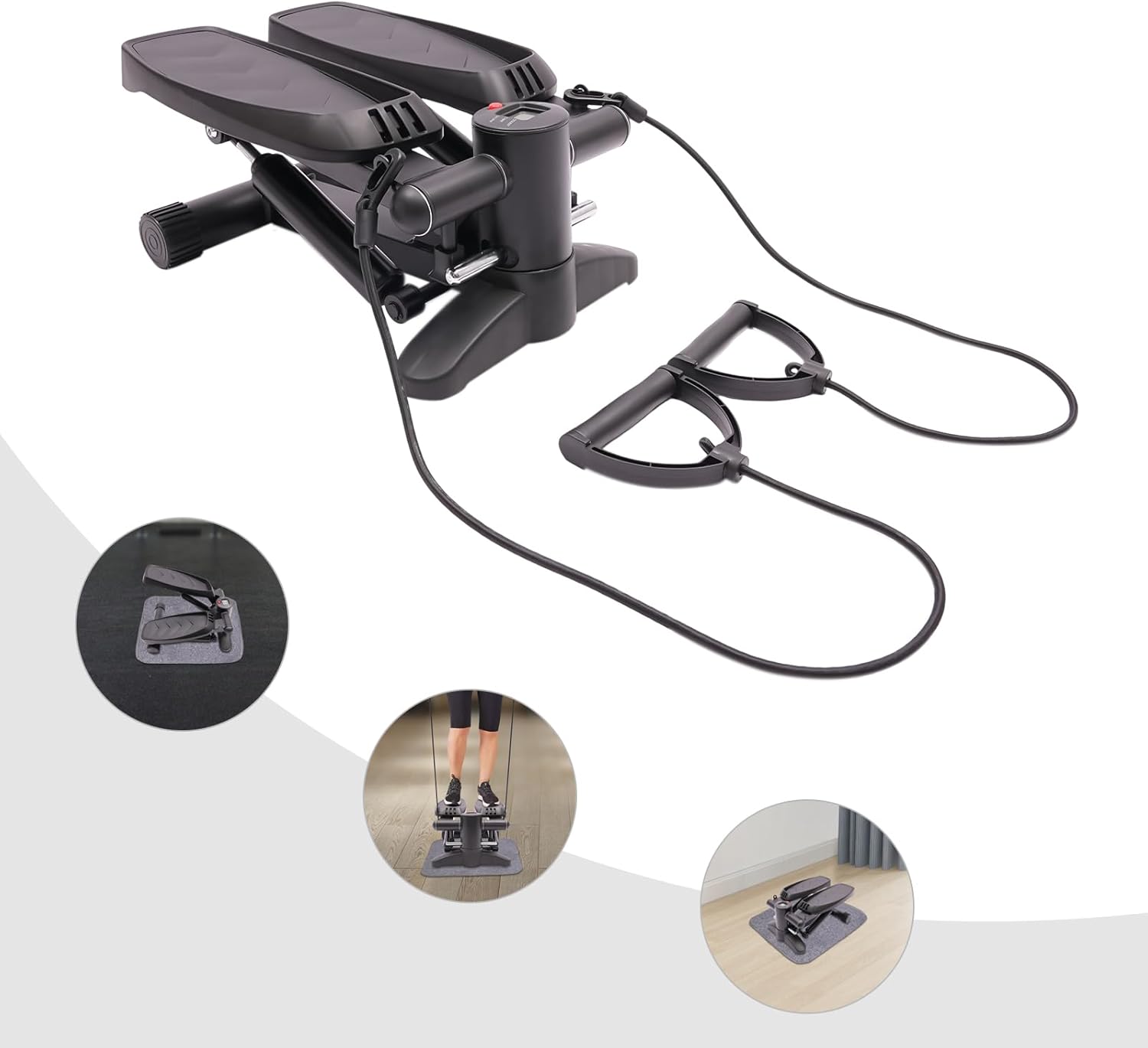 2 in 1 Home Stepper Quiet Mini Stepper 150kg with LCD Monitor Fitness Mini Stepper with Power Ropes for Leg/Arm/Butt Workout, Home Workout,