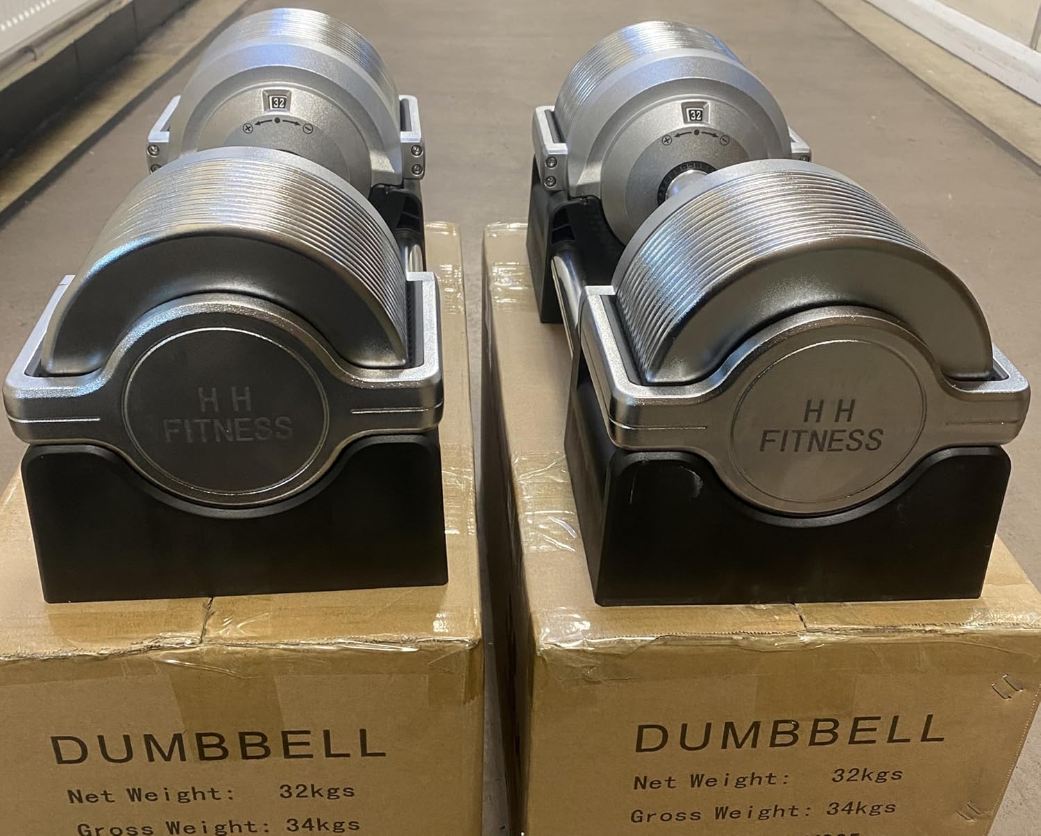 30 Weights in 1 Adjustable Dumbbells, 2 x 32kg Adjustable Dumbbells (1kg increments)