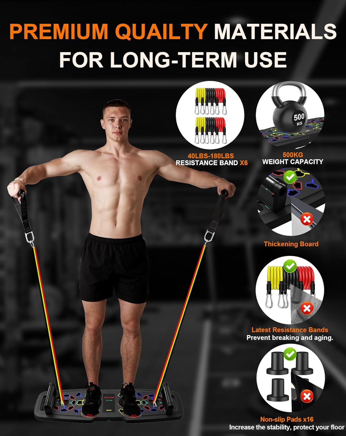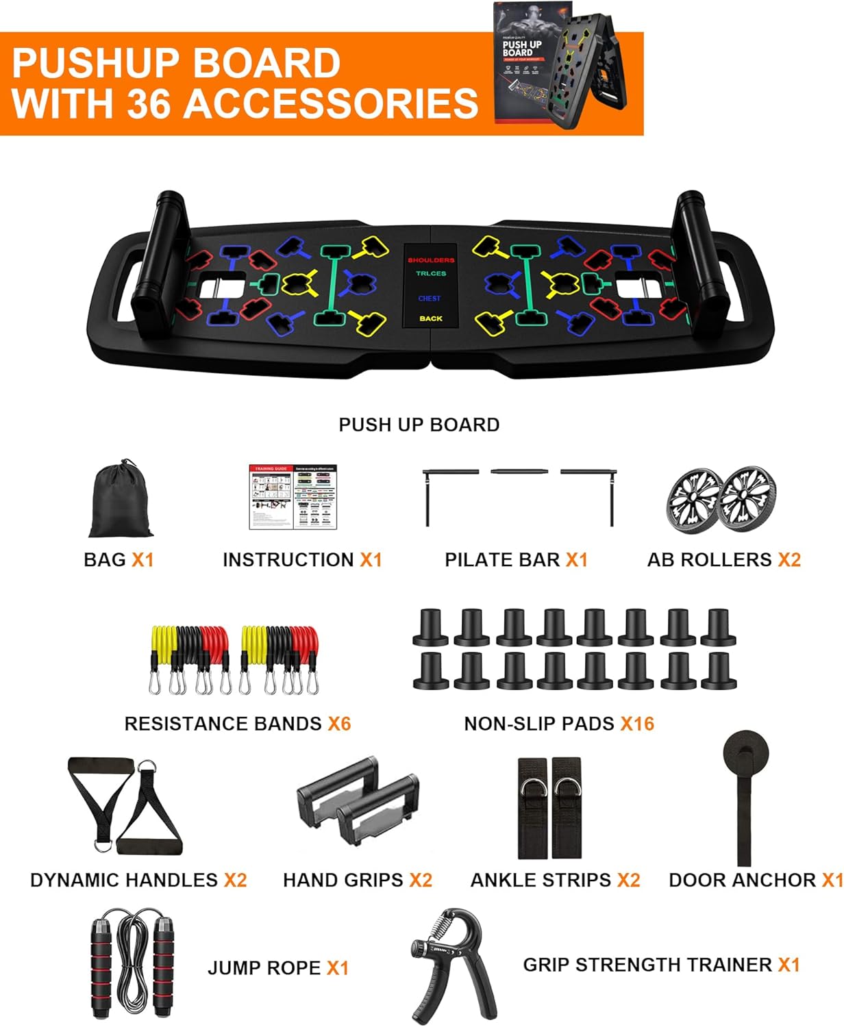 CHALLENGE WITH THE ULTIMATE WEIGHT LIFTING BOARD – Whether you’re a fitness enthusiast or just starting out, this gym equipment allows you to build strength and muscle effectively. In addition to the pressure board, the set includes 36 matching accessories. A variety of push-up positions, strength training, resistance exercises and cardio workouts are guaranteed to give you a complete body workout. Achieve your perfect body shape with this home gym equipment.