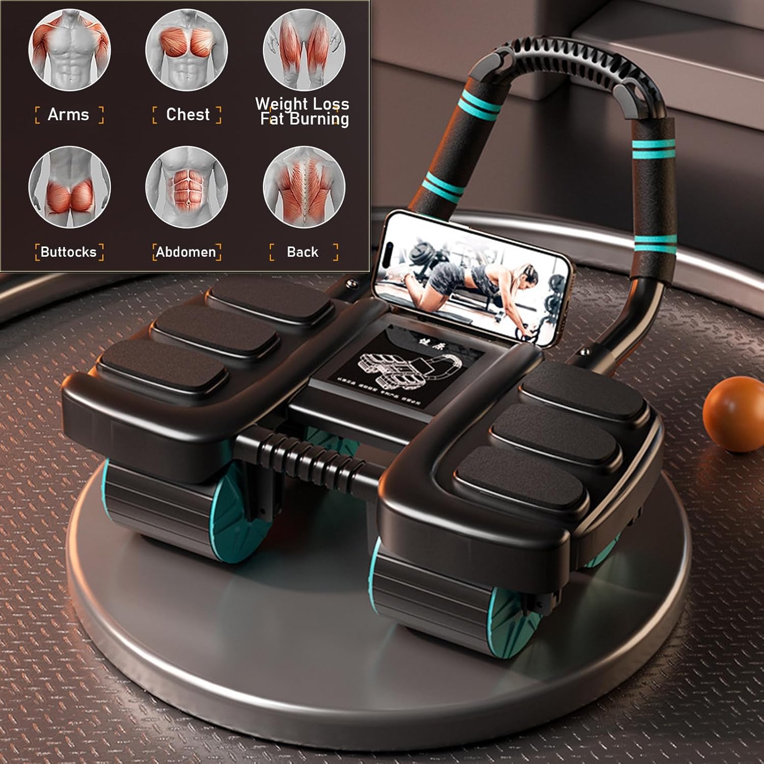 ✦ Nombre del producto: Rueda abdominal con soporte de codo de cuatro ruedas