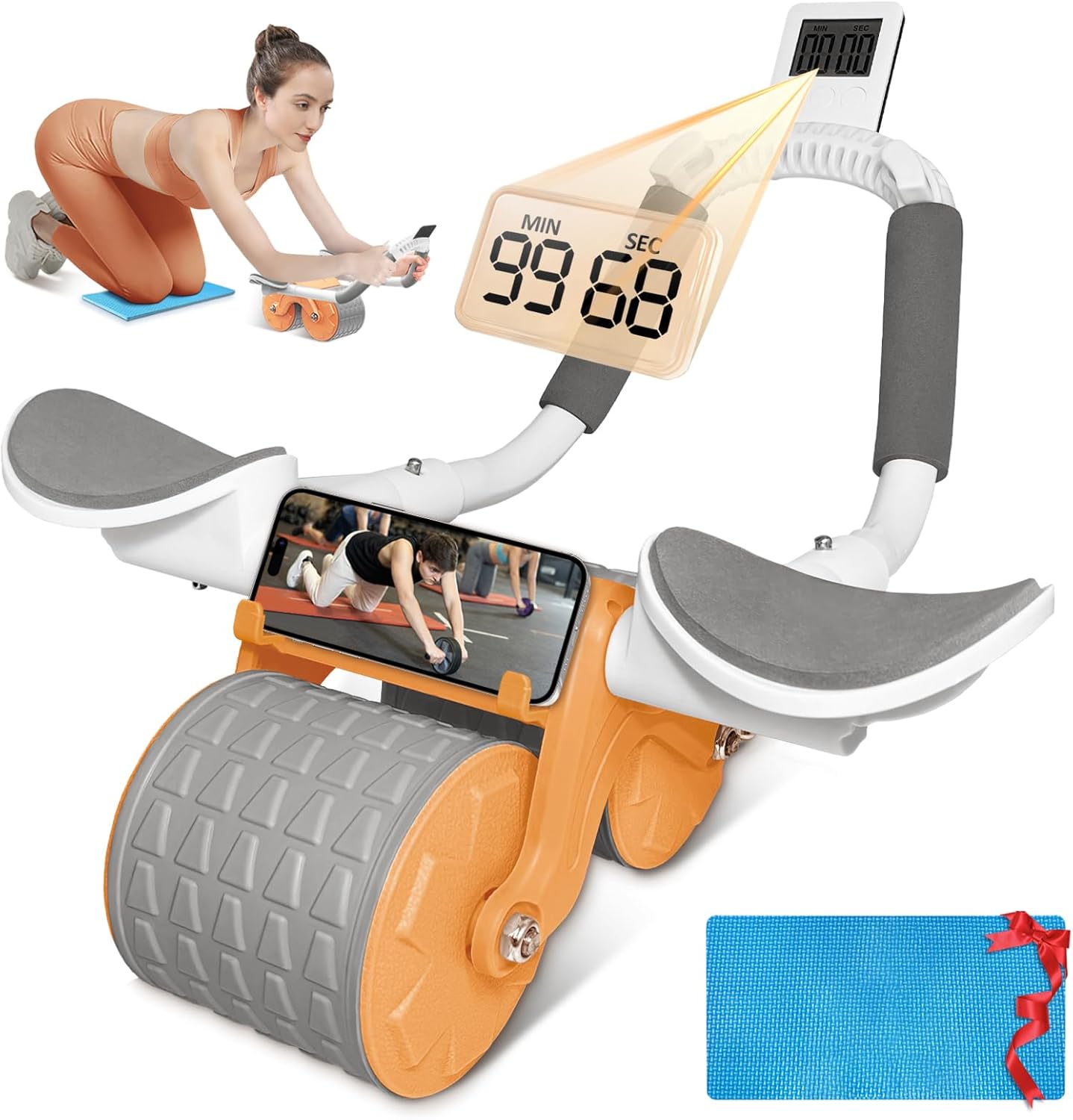 Abdominal Roller Abdominal Roller Abdominal Trainer with Knee Mat and Timer, Abdominal Trainer Wheel with Auto Rebound and Elbow Support, Abdominal Trainer Roller for Women Men