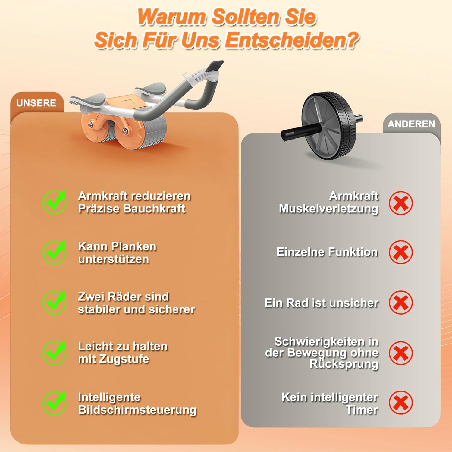 【Dual Wheel Design】This exercise abdominal roller has two wider front and rear wheels for smooth gliding and better control. It helps you train every muscle and core while providing you with safer control over your body, especially for beginners.
