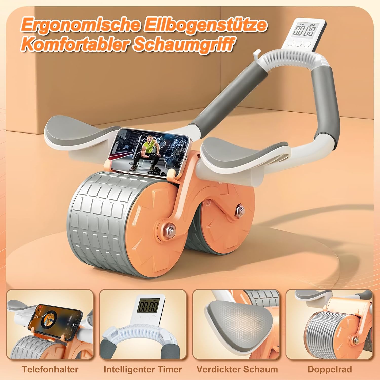 Abdominal Roller Abdominal Roller Abdominal Trainer with Knee Mat and Timer, Abdominal Trainer Wheel with Auto Rebound and Elbow Support