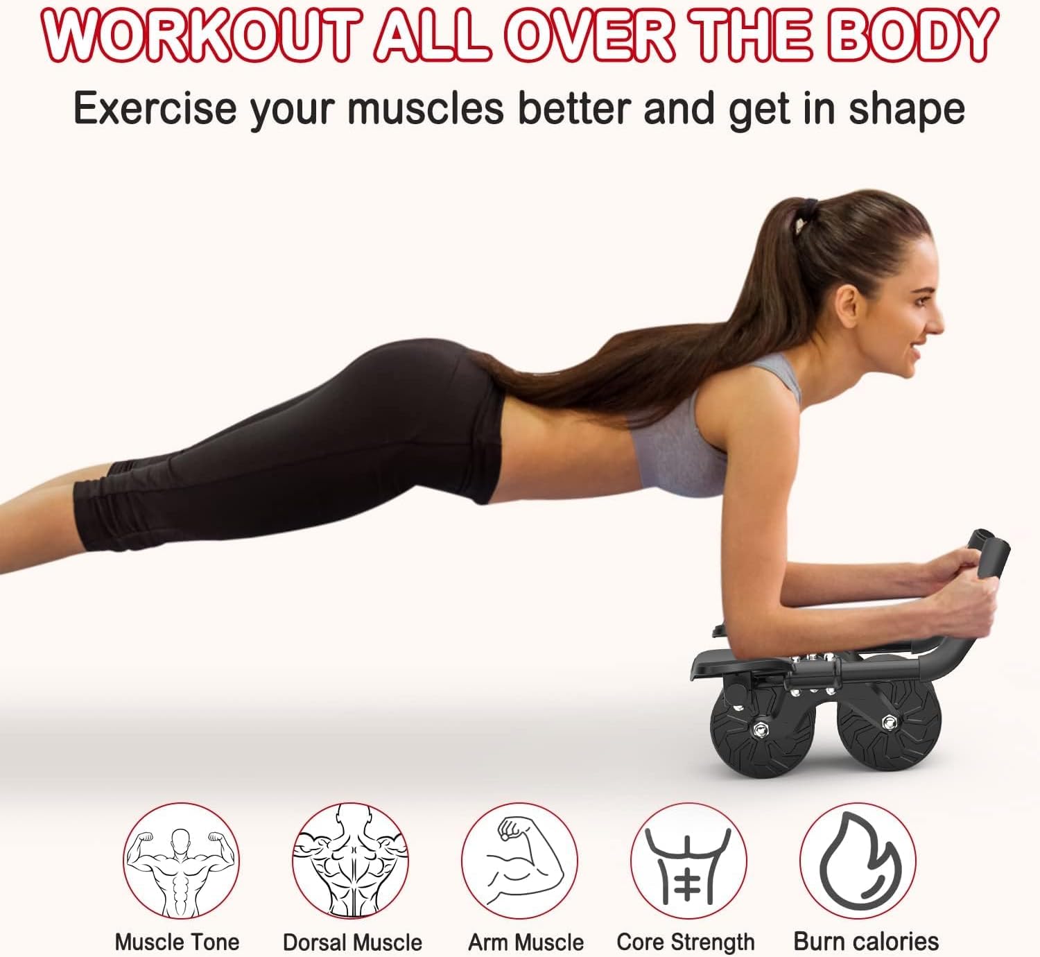 PREMIUM QUALITY & DURABILITY – Made with high-quality engineering plastics, this ab exercise wheel is built to last. Its impact-resistant construction ensures long-term durability. The handle is designed with comfortable EVA foam padding, and the wide rubber wheel offers stability, silence and floor protection.