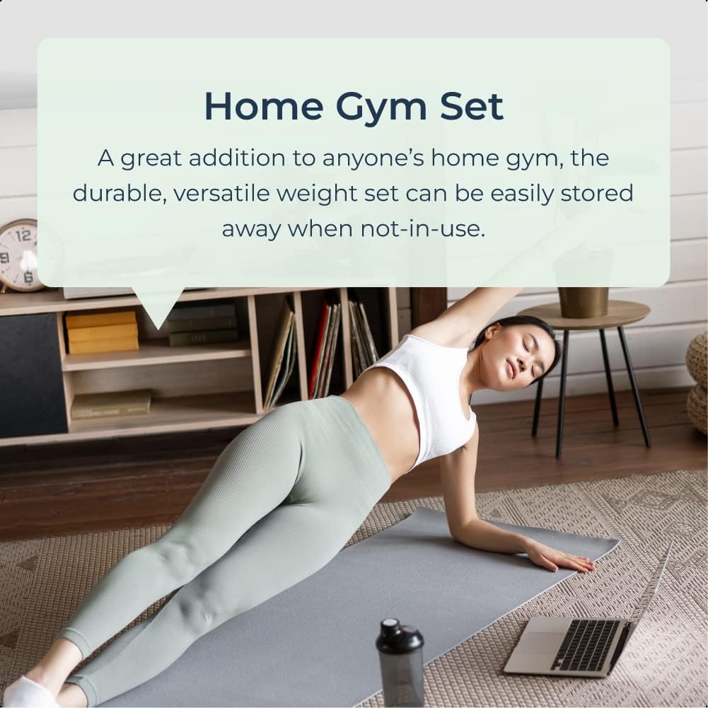 Una gran adición al gimnasio en casa de cualquier persona, el juego de pesas duradero y versátil se puede almacenar fácilmente cuando no esté en uso.