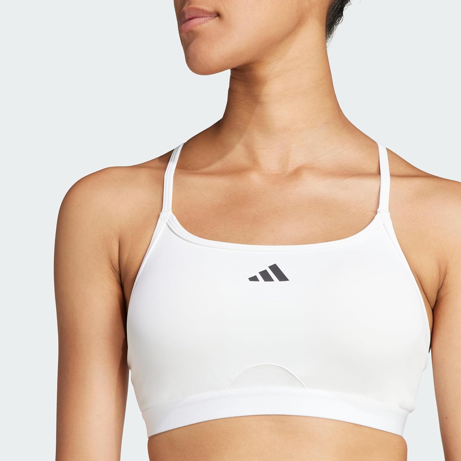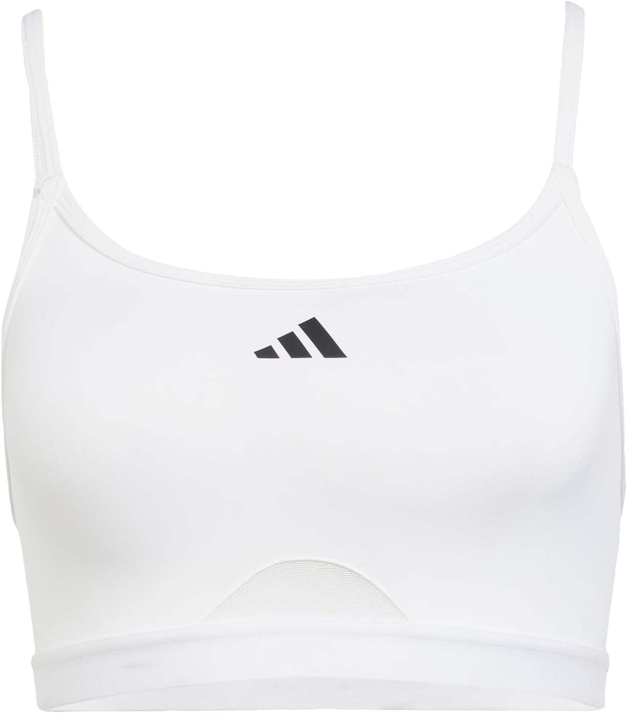 This adidas workout bra is designed for high performance, with mesh panels that increase airflow from warming up to cooling. AEROREADY keeps you dry, so you can focus on your workout, not your clothes. Adjustable racerback straps provide extra support and smooth edges minimize friction. This product is made with at least 70% recycled materials. By reusing materials that have already been created, we help reduce waste and our dependence on finite resources and reduce the footprint of the products we make.