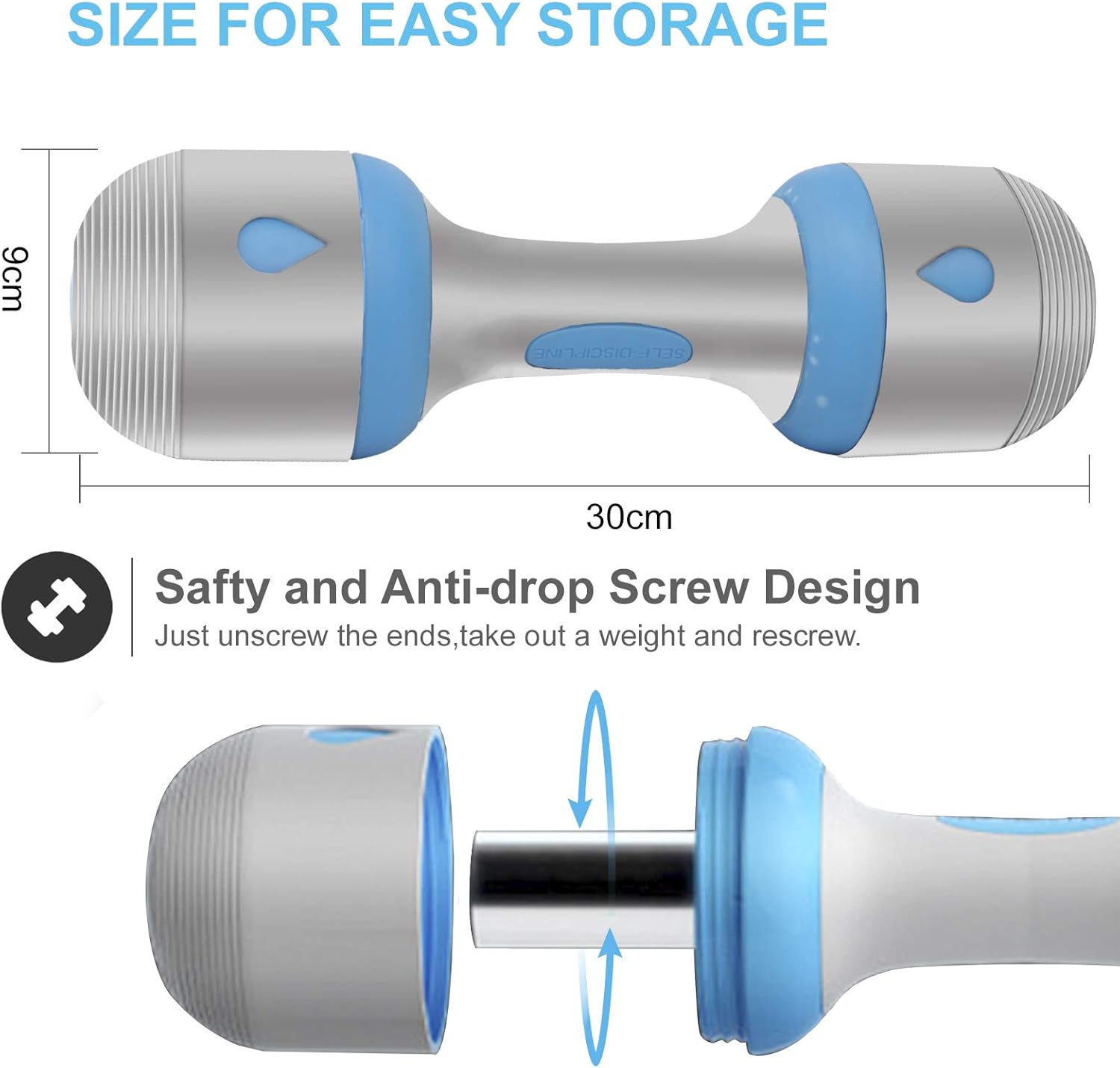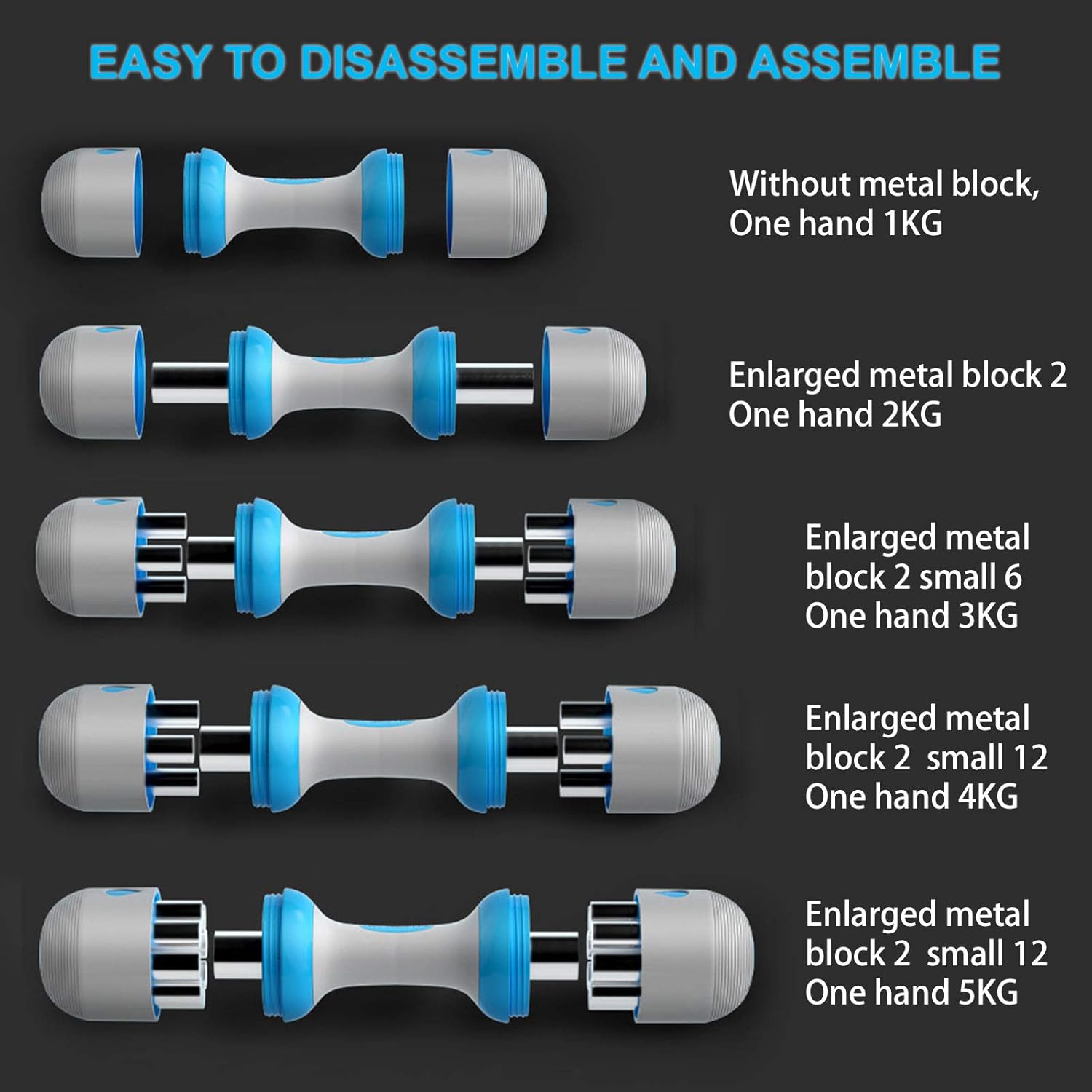 💪 ADJUSTABLE WEIGHT: You can choose between 1kg and 5kg. Adjustable dumbbells, you can freely customize the weight settings to meet training needs.