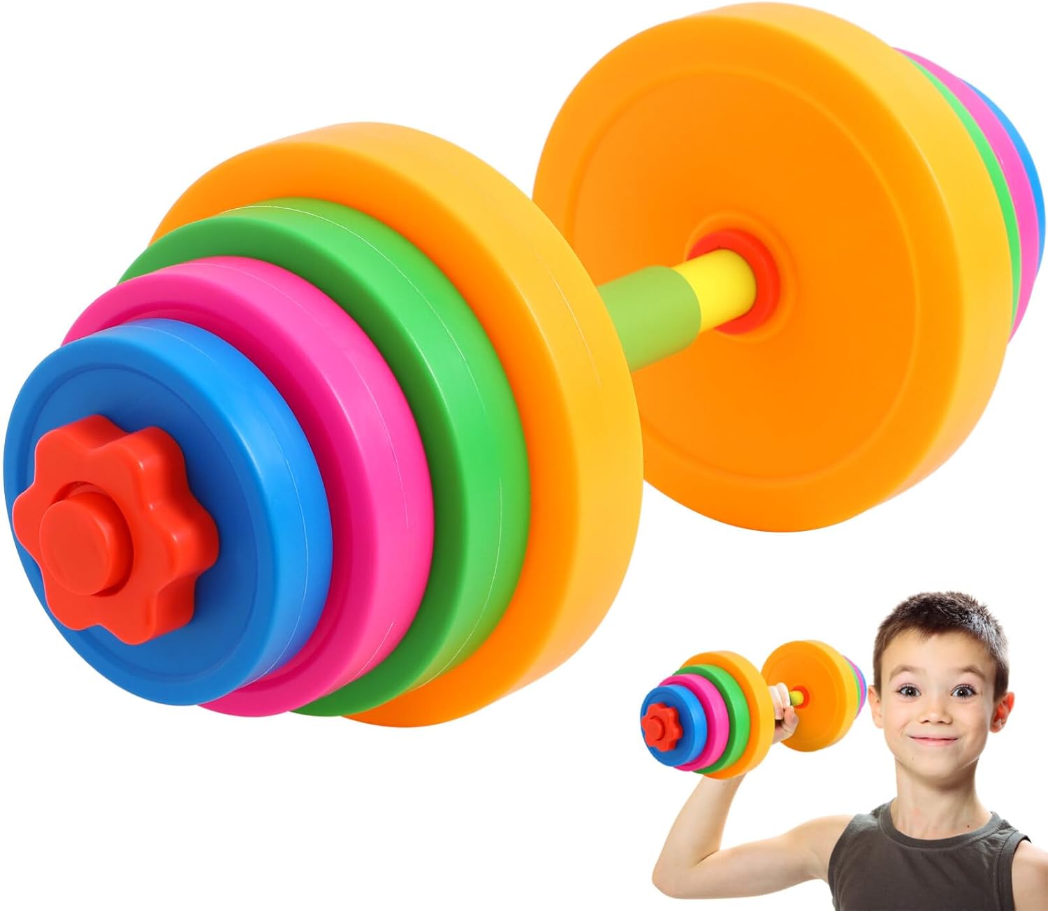 Mancuernas para niños: hechas de plástico, cómodas de llevar, adecuadas para niños y niñas.