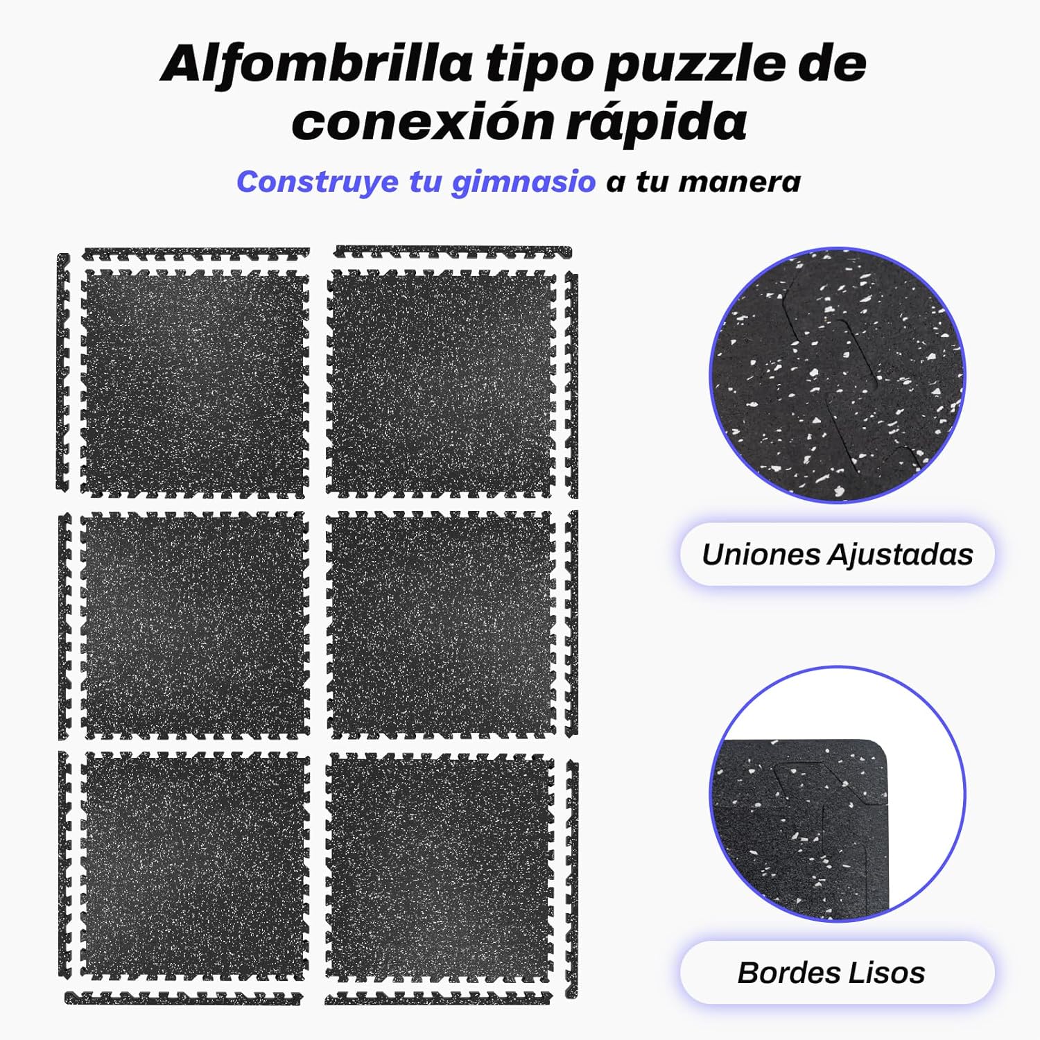 [Flexible, adjustable and combinable] Each piece of gym rubber floor measures 60 x 60 x 1.5 cm. With 6 pieces, the area is 2.15 m2; with 12 pieces, the area is 4.3 m2; and with 24 pieces, the area is 8.6 m2. The puzzle mat pieces fit perfectly without leaving any gaps and can be easily adapted to any space.