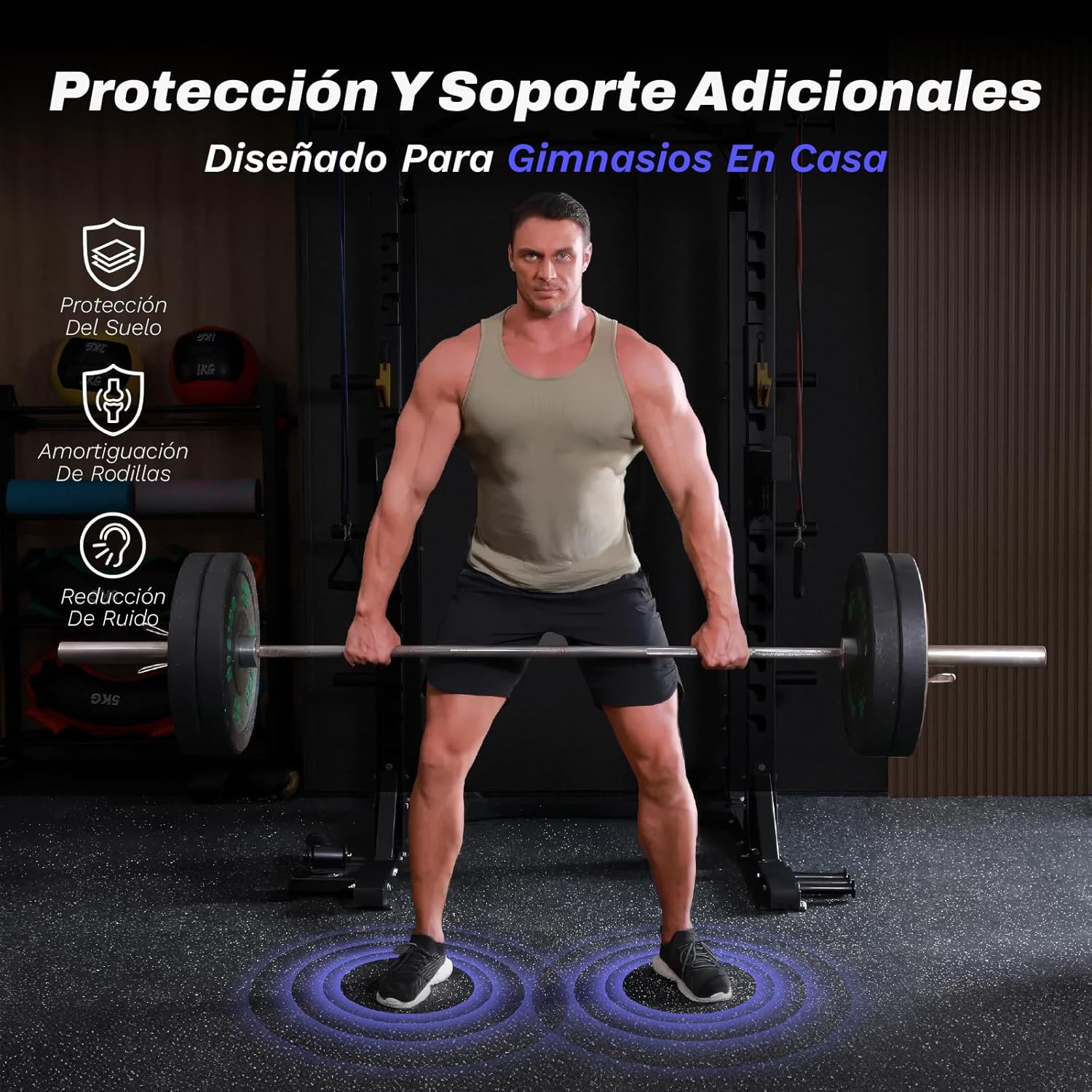 Suelo para gimnasio y banco de pesas AIRHOP