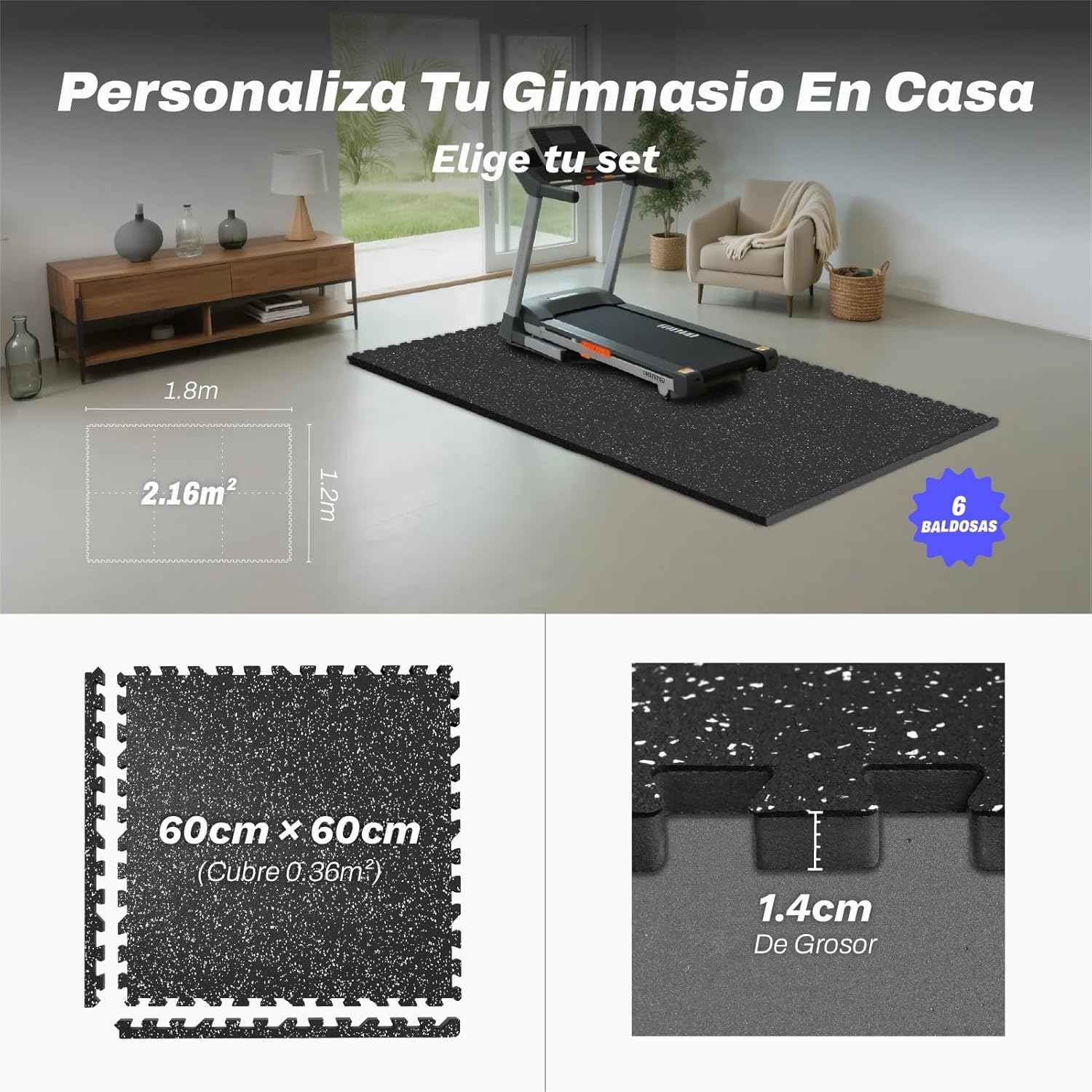 1,4 cm de grosor, 12 baldosas Ofrecen una gran protección