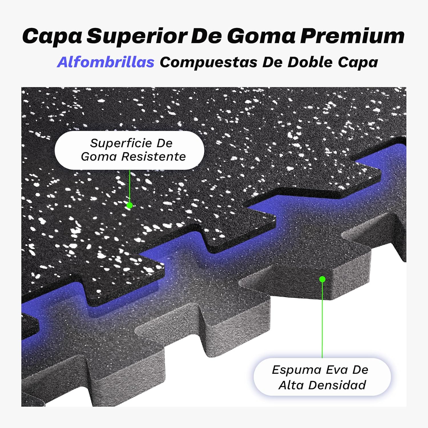 [UPGRADED DOUBLE LAYER STRUCTURE] The top layer of this gym floor is made of natural rubber, while the inner layer is high-density EVA foam. Gym floor is robust and durable, with sound insulation, damping, thermal insulation and water resistance properties. In addition, it is free of BPA and harmful substances, meeting the highest quality standards.