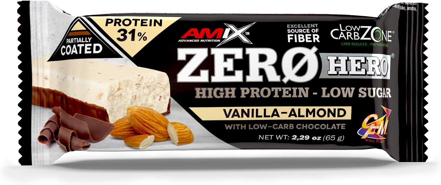 AMIX – Zero Hero Protein Bars – 12 bars – Promotes Muscle Recovery – Sports Snack with High Protein Content – Vanilla and Almond Flavor