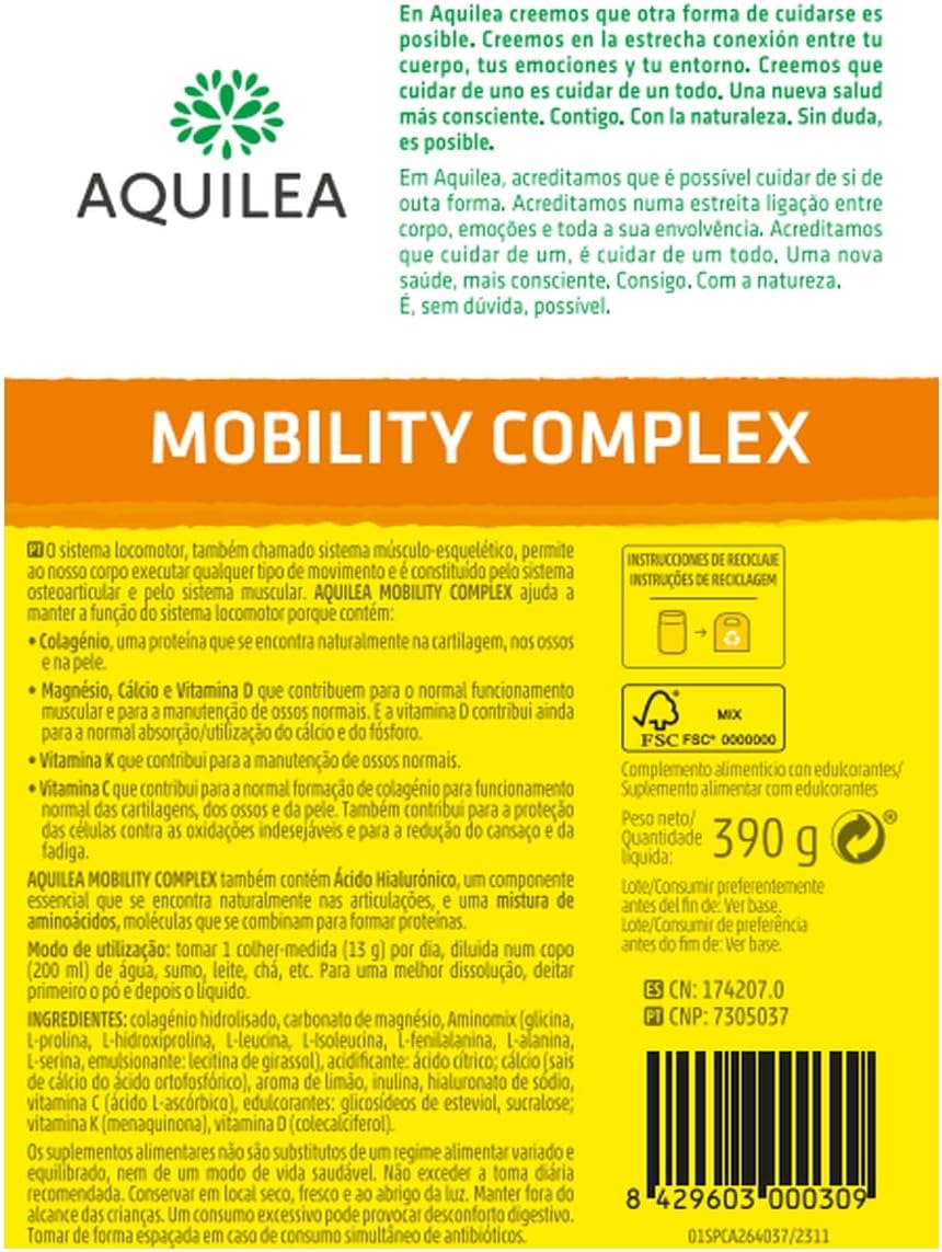 AQUILEA | Mobility Complex Pack Duplo | 2 x 375g | Powder Format | Lemon Flavor | 3 in 1 Muscles, Bones & Joints | Collagen, Magnesium, Vitamin C D K, Calcium & Aminino Acids