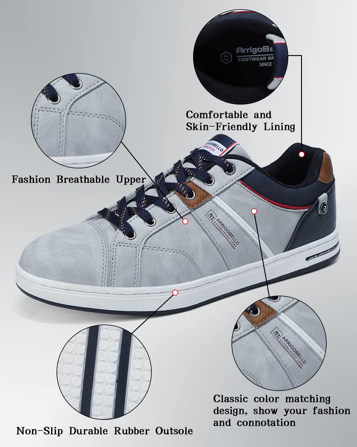 ARRIGO BELLO Men’s Shoes Sneakers Dress Casual Sports Walking Running Sports Gym Fashion Comfortable Travel Size 41-46