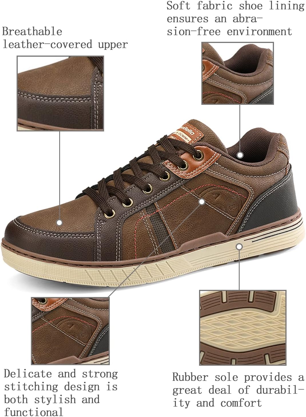 Men’s casual shoes are delicate and soft, comfortable and will not clog the feet, the stitches are firm and artistically. Men’s trainers are easy to wear and match well with jeans and pants, suitable for formal and informal occasions, walking, exercising, driving, shopping, traveling , running. High quality PU leather, the appearance is top quality. Special perforation design, make men’s shoes more breathable, providing a comfortable wearing experience. Soft and wear-resistant for a comfortable experience on your feet. Exceptional breathability and quick drying, keep freshness and freshness. The hardness is very good. Special texture design, make the shoes have more grip, good anti-slip effect, let walking safer and more stable. Excellent comfort without tired feet, walking shoes especially suitable for holiday trips that require long walks, to protect feet.