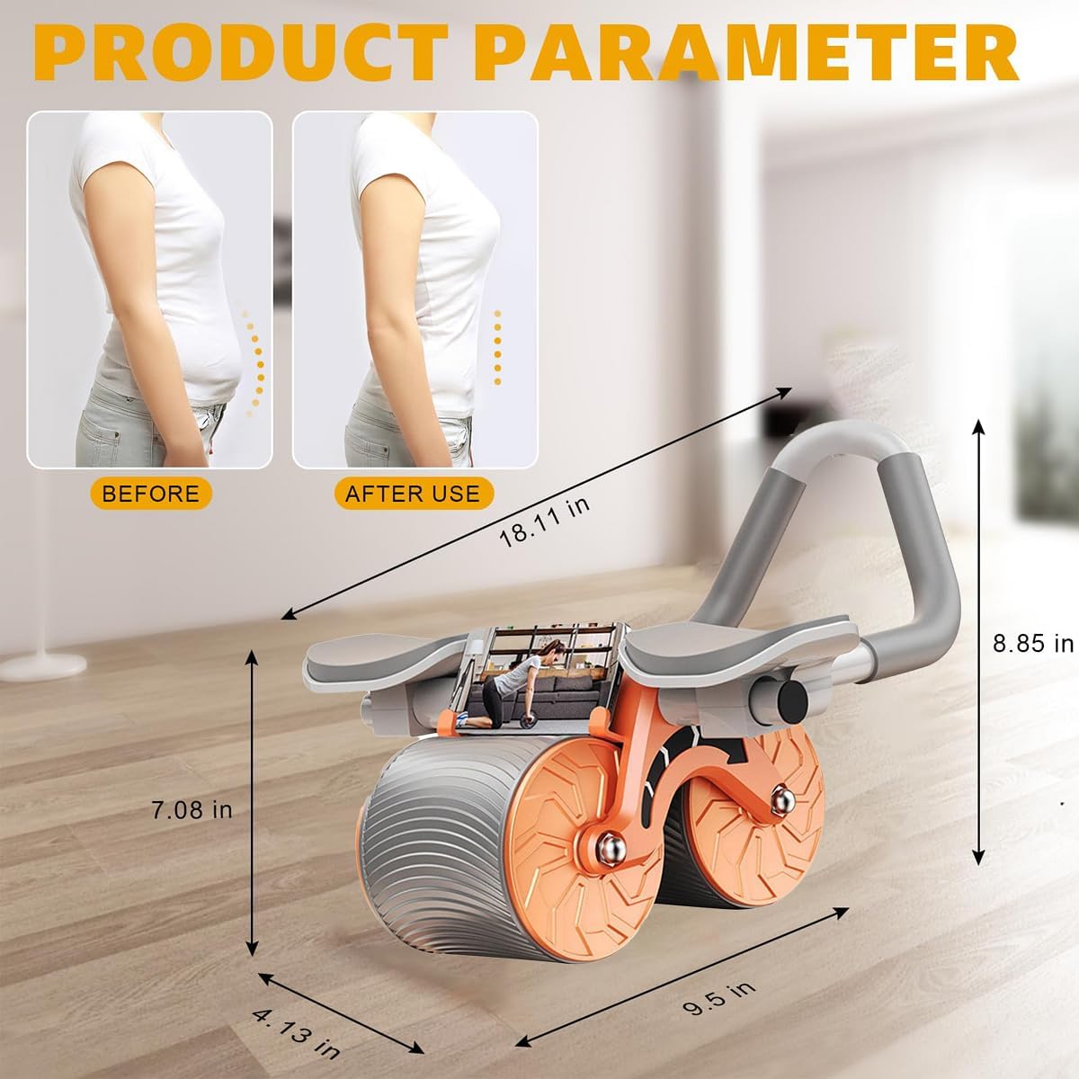 20 minutes = 2 hours. Using our ab wheel to train 20 minutes has the same fitness benefits as 2 hours of regular exercise. It is designed as the most stable triangular structure and has a load bearing of 330 lbs.