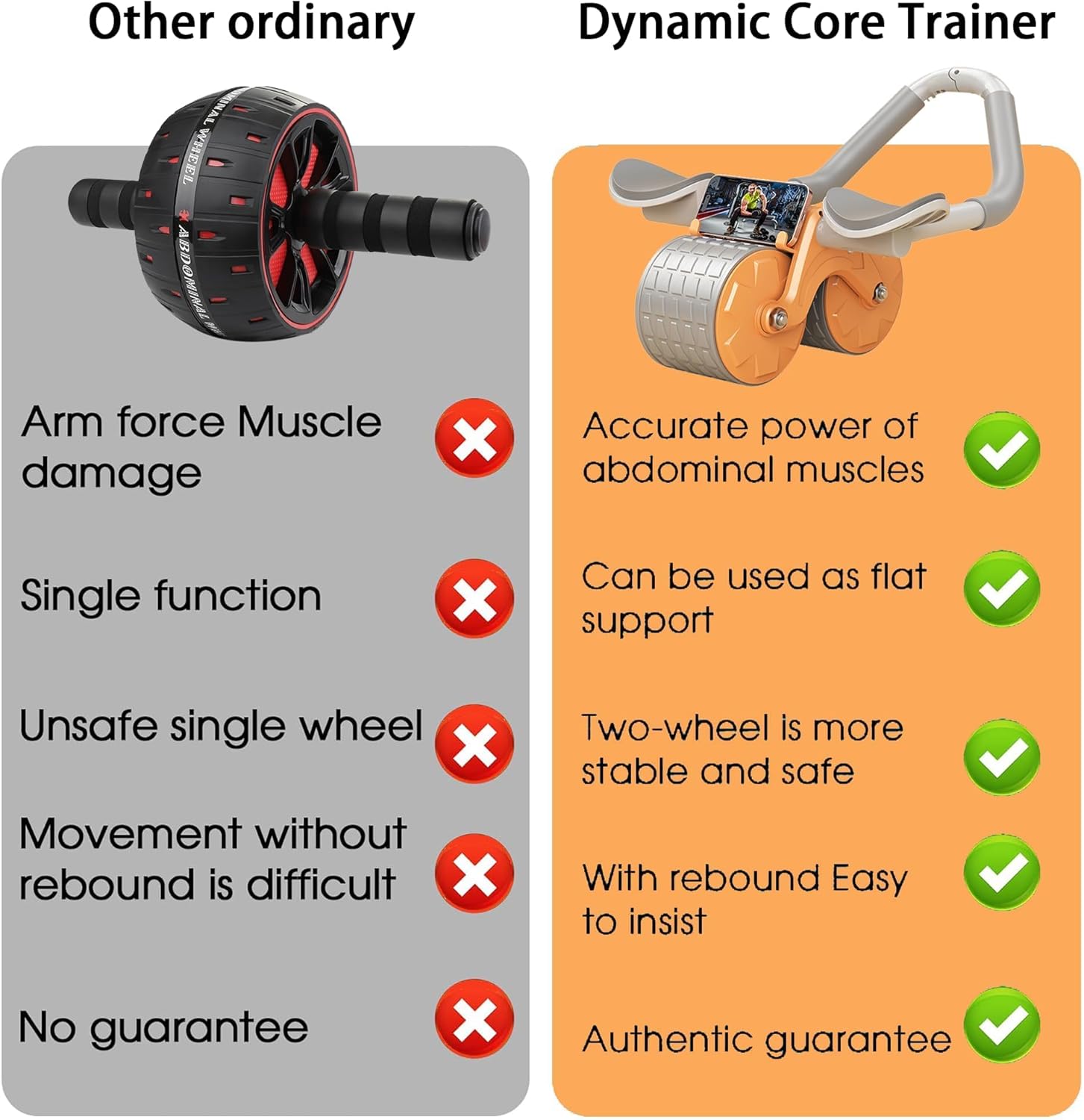 2 in 1 ABS Roller Wheel & Plank Support – Our upgraded ab roller with elbow support design provides greater stability. It is not only an abdominal roller wheel, but also a board. You can make planks anywhere without yoga mat.