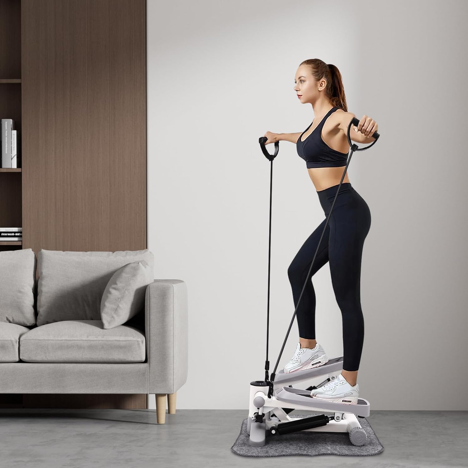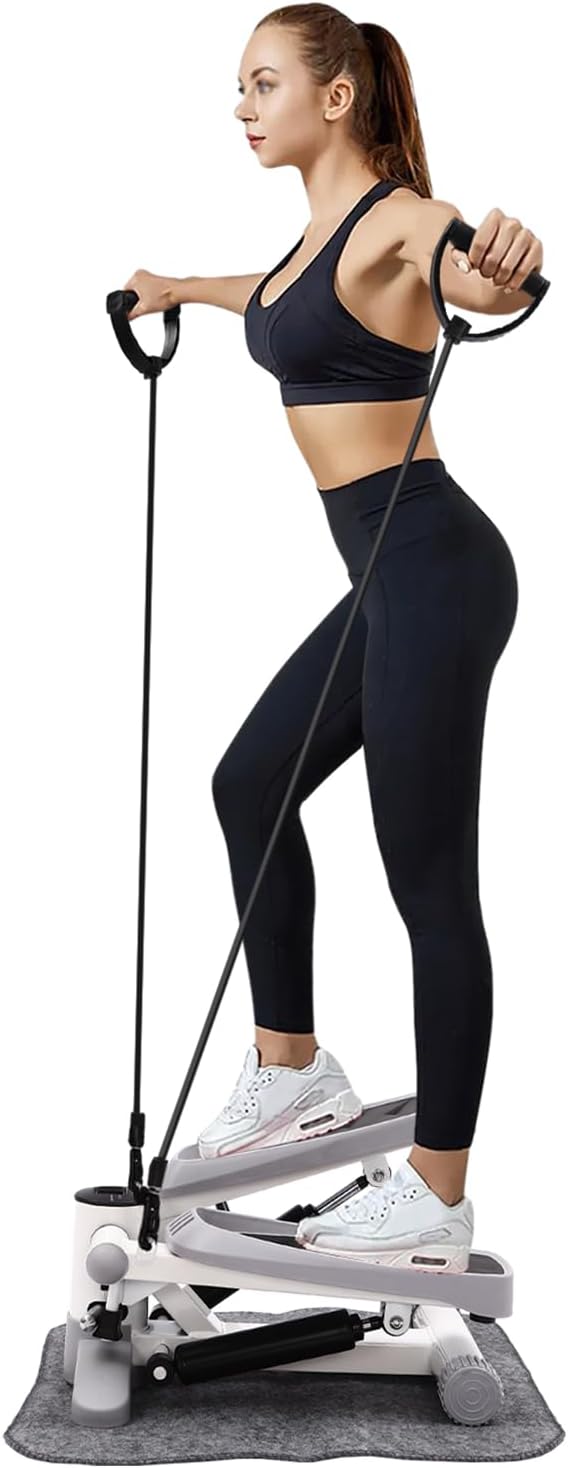 BAOCHADA Mini Stepper for Home | Swing Stepper with LCD Display | Hometrainer Stepper with Power Ropes | Max 150kg | for Leg/Arm/Butt Training Home Office Fitness