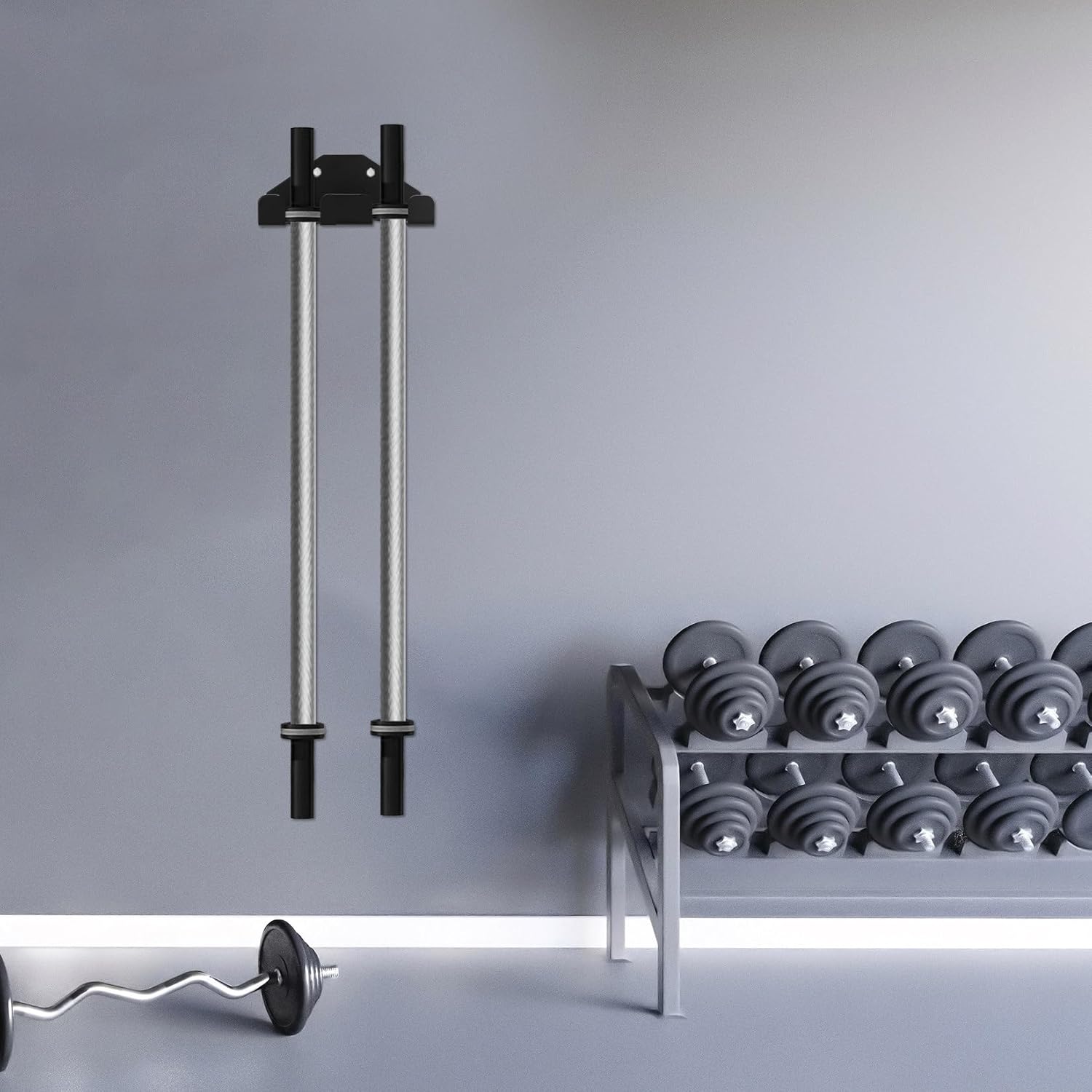 Well-organized design: the vertical bar wall hook is equipped with 2 hanging places with a width of 33mm, giving you enough space to further expand your gym and accommodate standard-sized dumbbells
