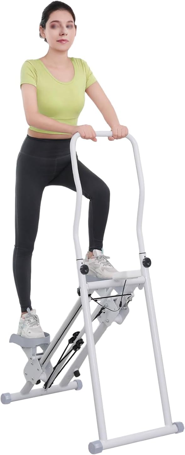 Bicicleta estática plegable Stair Stepper, mini escalera, con ángulo de pedal ajustable y altura de agarre, con pantalla LCD, máquina de fitness para entrenamiento de cuerpo completo para oficina en