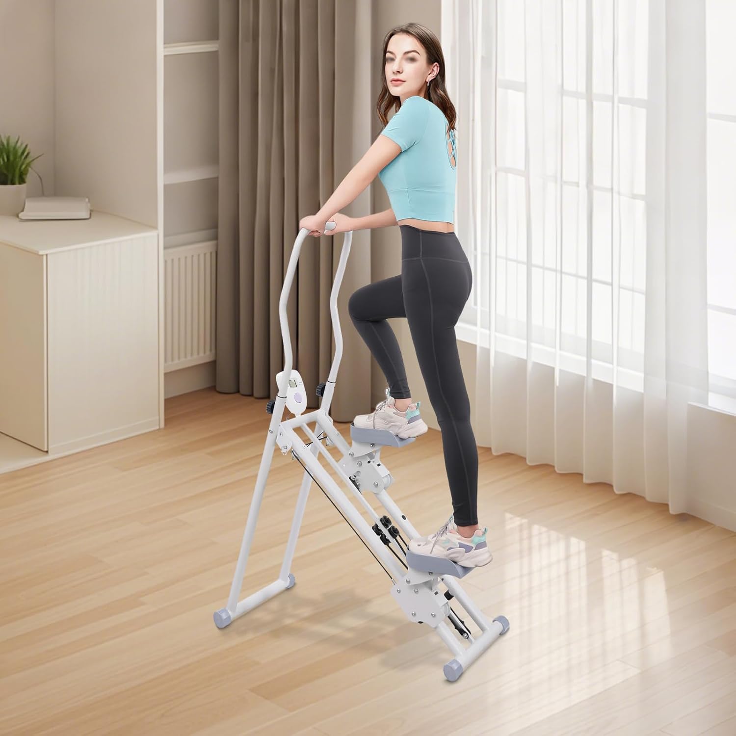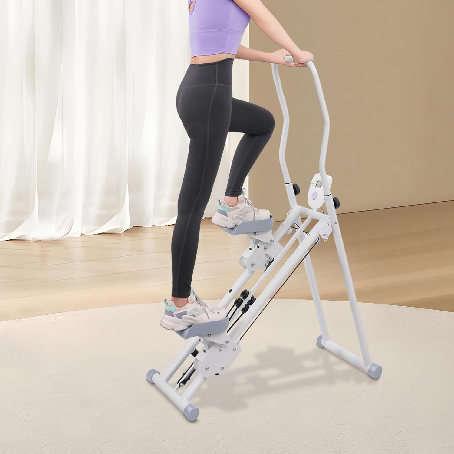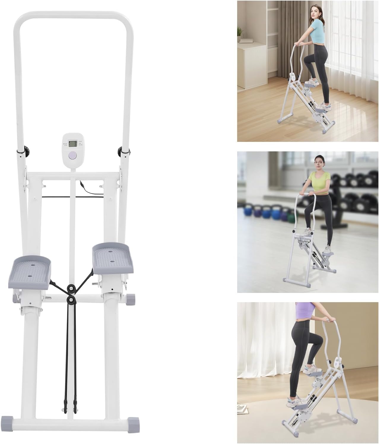 Pantalla LCD motivadora: Stepper de Stair Stepper ¡Mantén tus progresos siempre a la vista! La pantalla LCD transparente muestra datos importantes en tiempo real, como el tiempo, las calorías quemadas, los pasos y el ritmo. Te mantiene motivado y puedes seguir tus objetivos de fitness de manera eficiente.