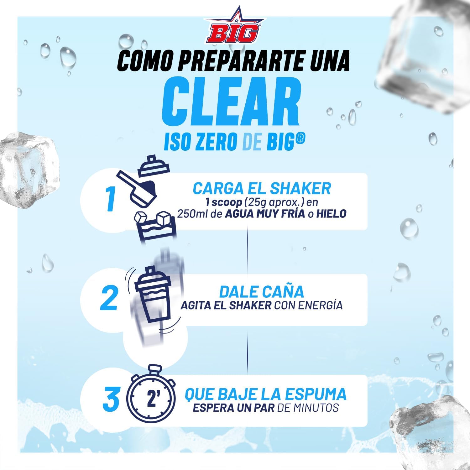 ADVANCED TECHNOLOGY AND MAXIMUM INNOVATION: BIG has revolutionized the clear protein market with its CLEAR ISO ZERO range, incorporating Volac’s exclusive Volactive Pro2O Ready to Mix patent, ensuring perfect dissolution, exceptional taste and unmatched quality.