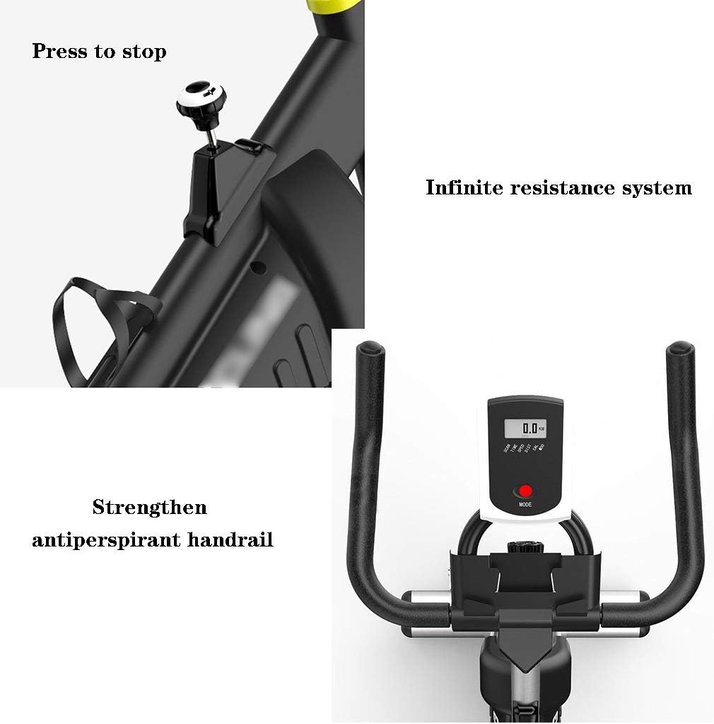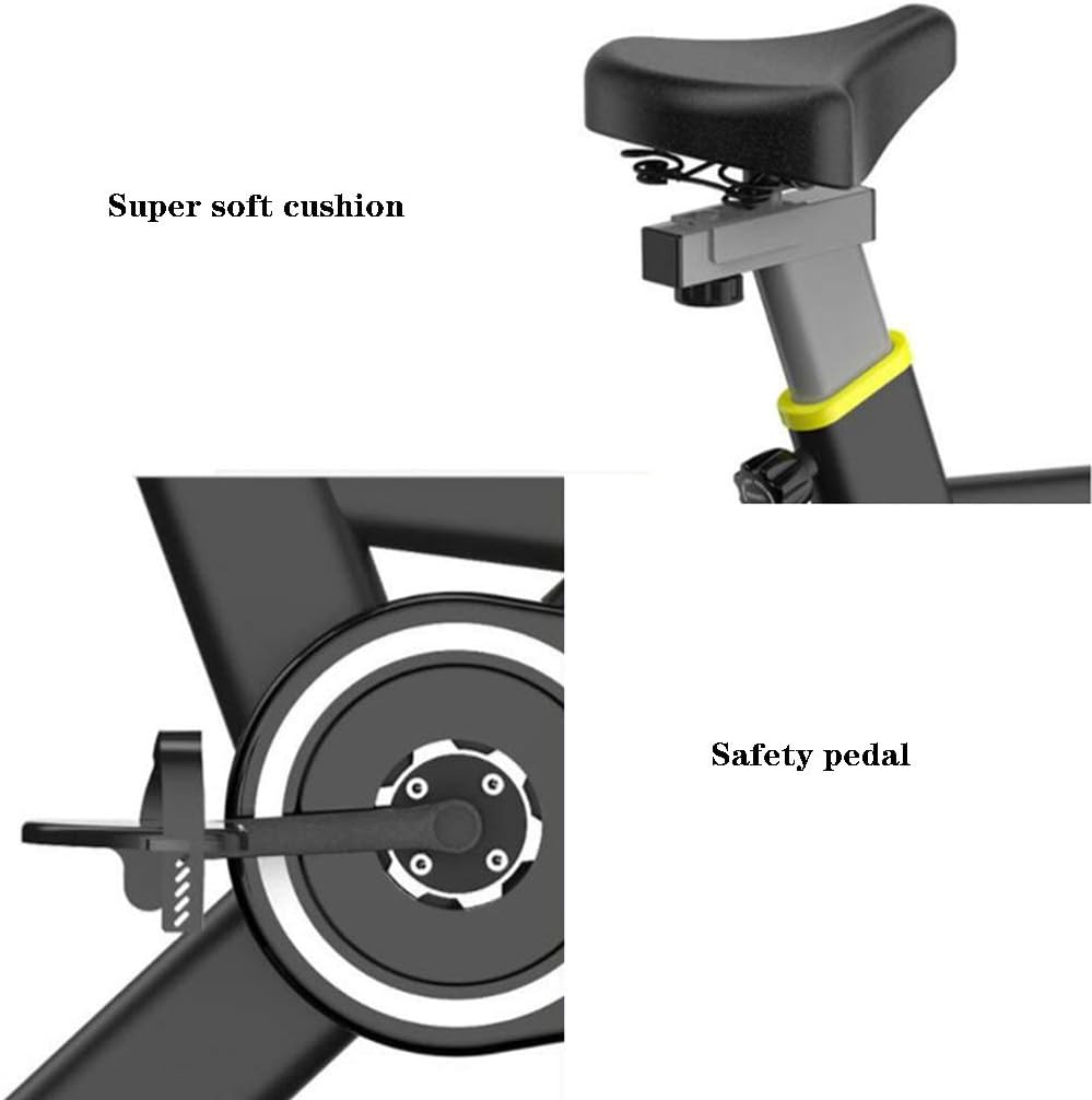 【Adjustable Resistance Indoor Cycling Bike】This indoor cycling bike uses 6kg galvanized flywheel + belt drive system to make riding smooth and quiet; Use the infinite resistance knob to adjust the strength of the exercise bike, which is very suitable for physical and muscle training. Reduce fat, promote blood circulation and metabolism.