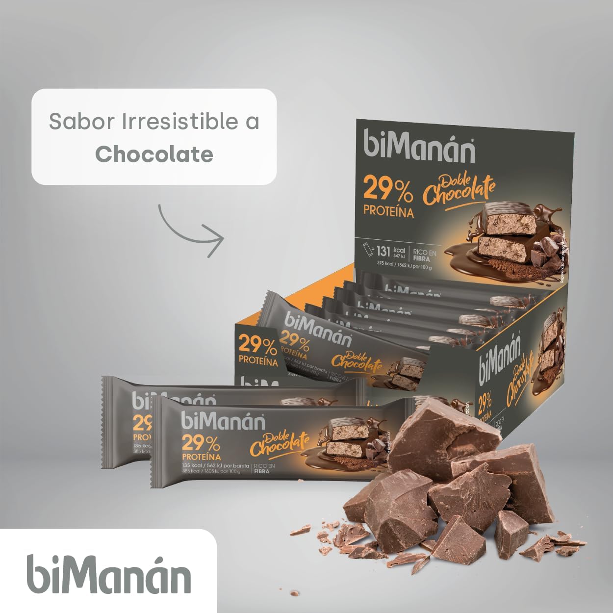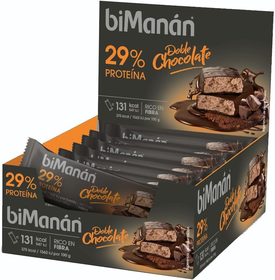 BIMANÁN BEFIT – BARRITAS DOBLE CHOCOLATE – Alimento Hiperproteico – Doble Cobertura de Chocolate Negro y con Almendras – 29% de Proteínas – Expositor 20 Unidades (700g)