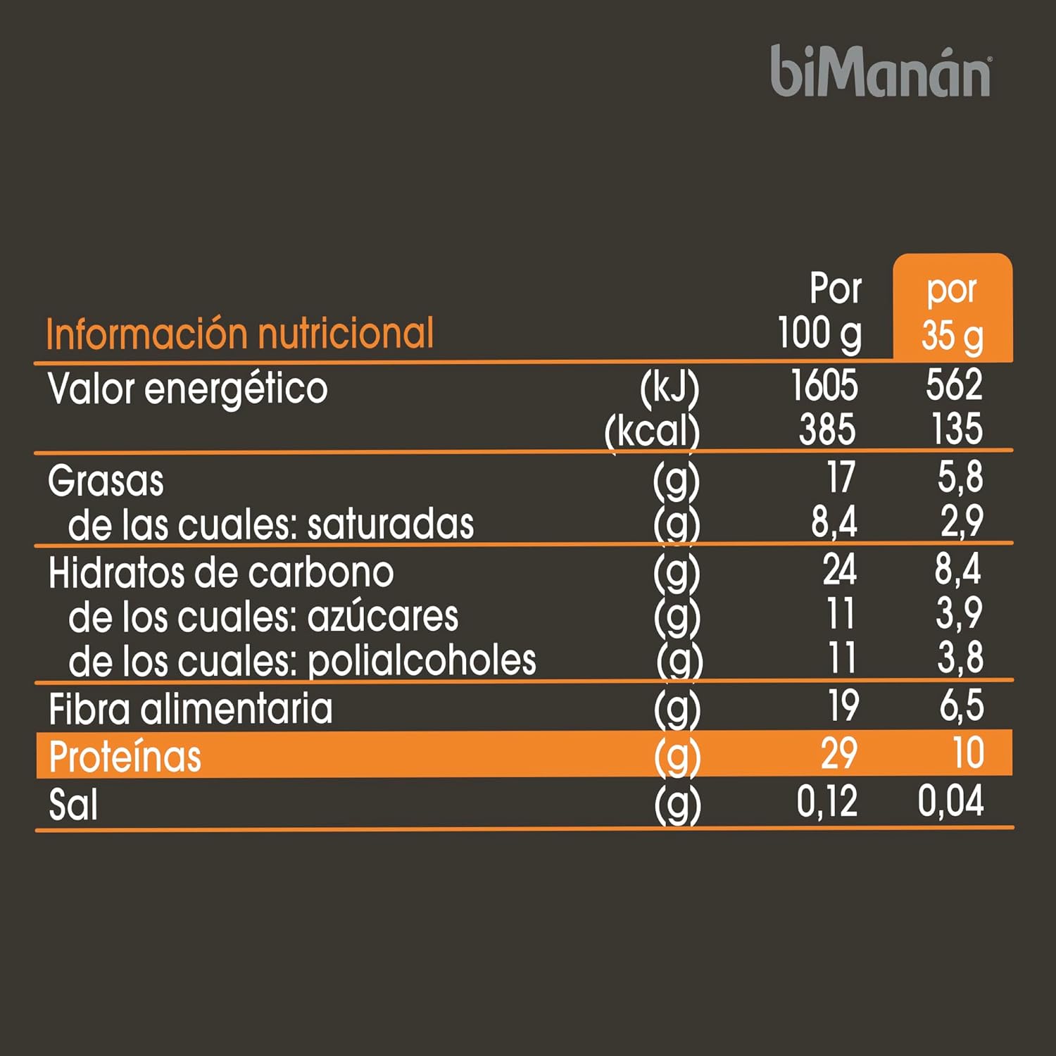 HYPERPROTEIC FOOD: Each 35g double chocolate bar contains 10g of protein, i.e. 29% protein!