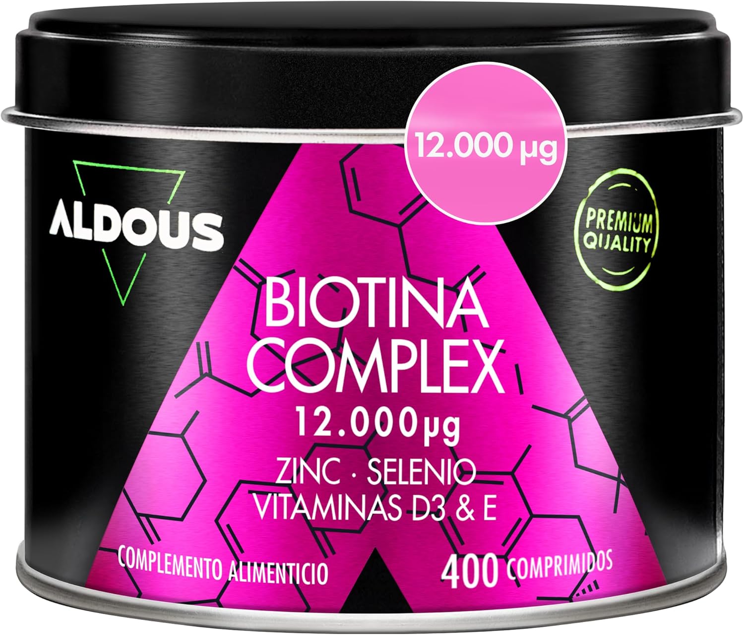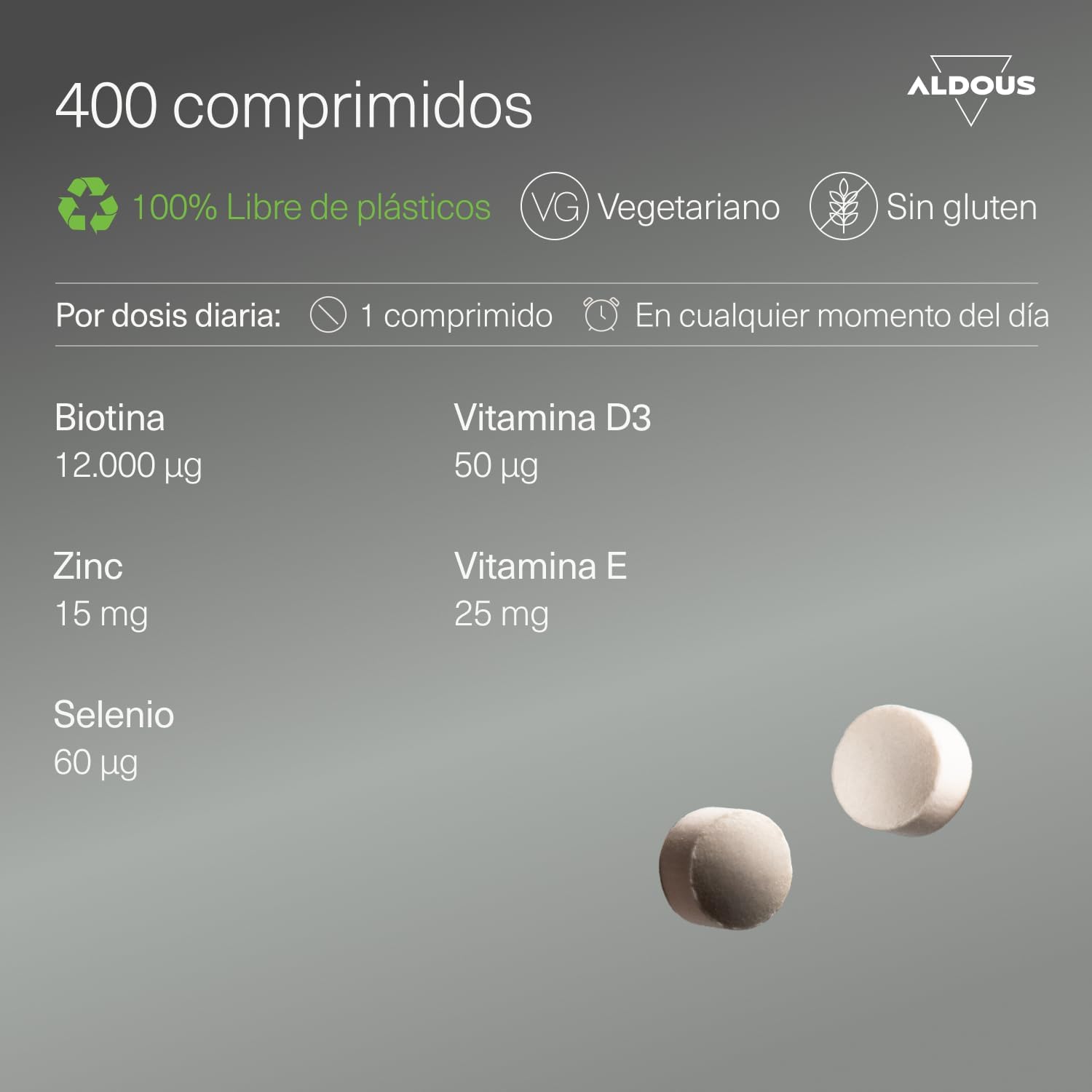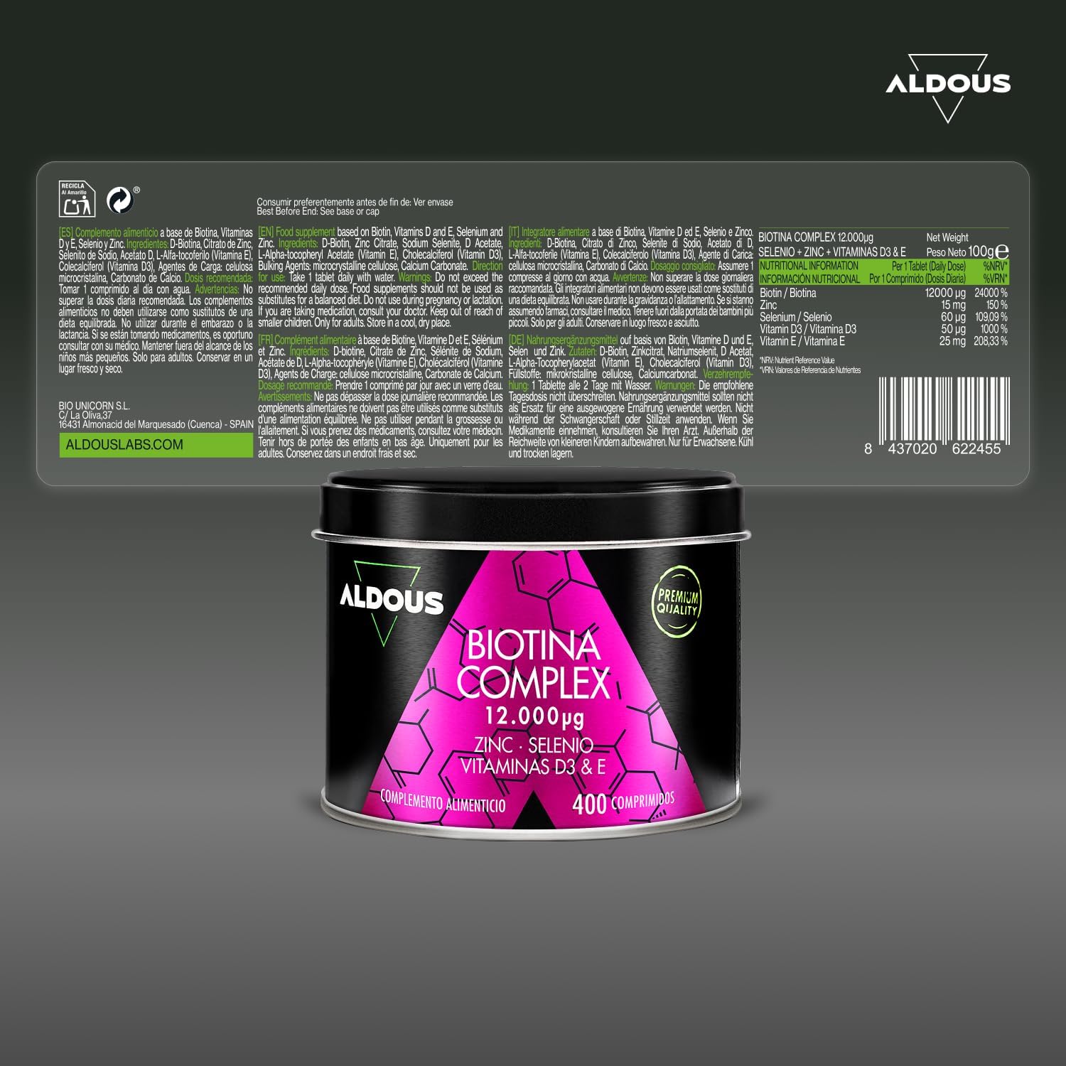 ⭐ MAXIMUM DOSE BIOTIN 12,000mcg – The advanced formulation of Biotin Complex Aldous contains 20% more Biotin in each tablet than formulations that have only 10,000mcg. Our advanced composition enriches the best quality Biotin 12,000mcg with Vitamins, to contribute to the care of hair, skin and nails. The combination of Biotin, Vitamins, Selenium and Zinc is perfect for healthy skin, hair and nails.