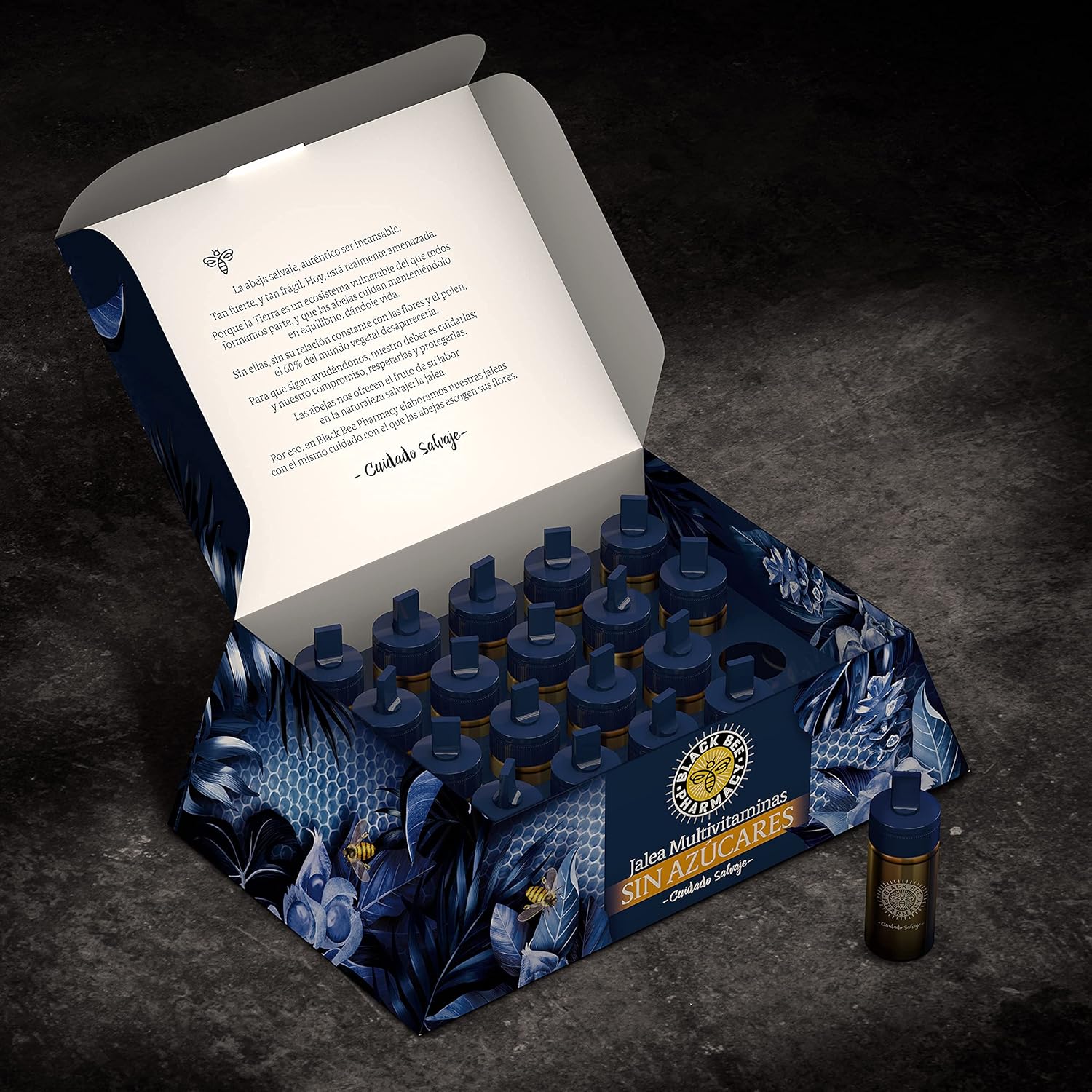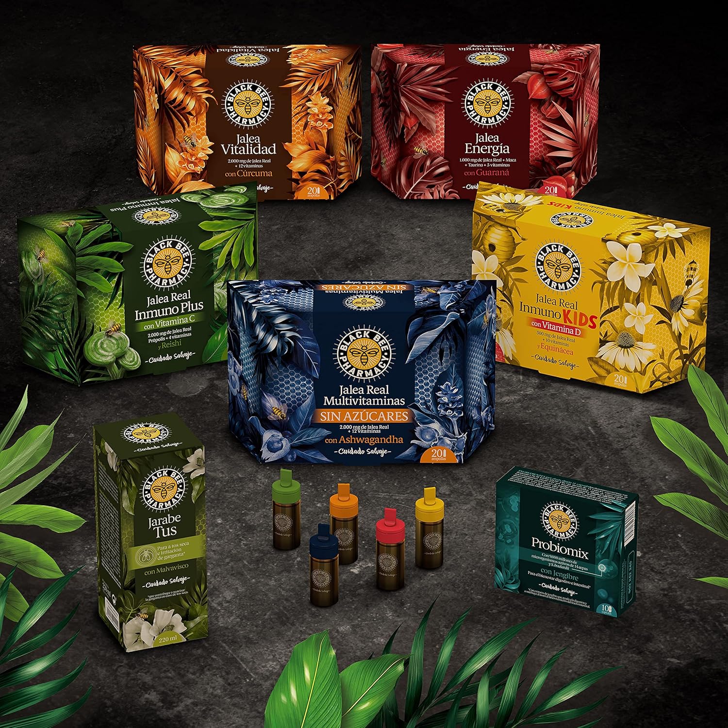 Discover Black Bee Pharmacy’s Sugar Free Multivitamin Food Supplement based on Royal Jelly, 12 vitamins and Ashwaganda, a plant that helps maintain energy levels. Black Bee Pharmacy is a brand of food supplements, based on the properties of the hive products, a complex ecosystem whose bees make interesting substances. So strong, and so fragile. Today, she is really threatened. Without them, without their constant relationship with flowers and pollen, 60% of the plant world would disappear. Therefore, at Black Bee Pharmacy we make our jellies with the same care with which bees choose their flowers. Food supplements should not be used as substitutes for a balanced diet. It is important to follow a varied and balanced diet and a healthy lifestyle.
