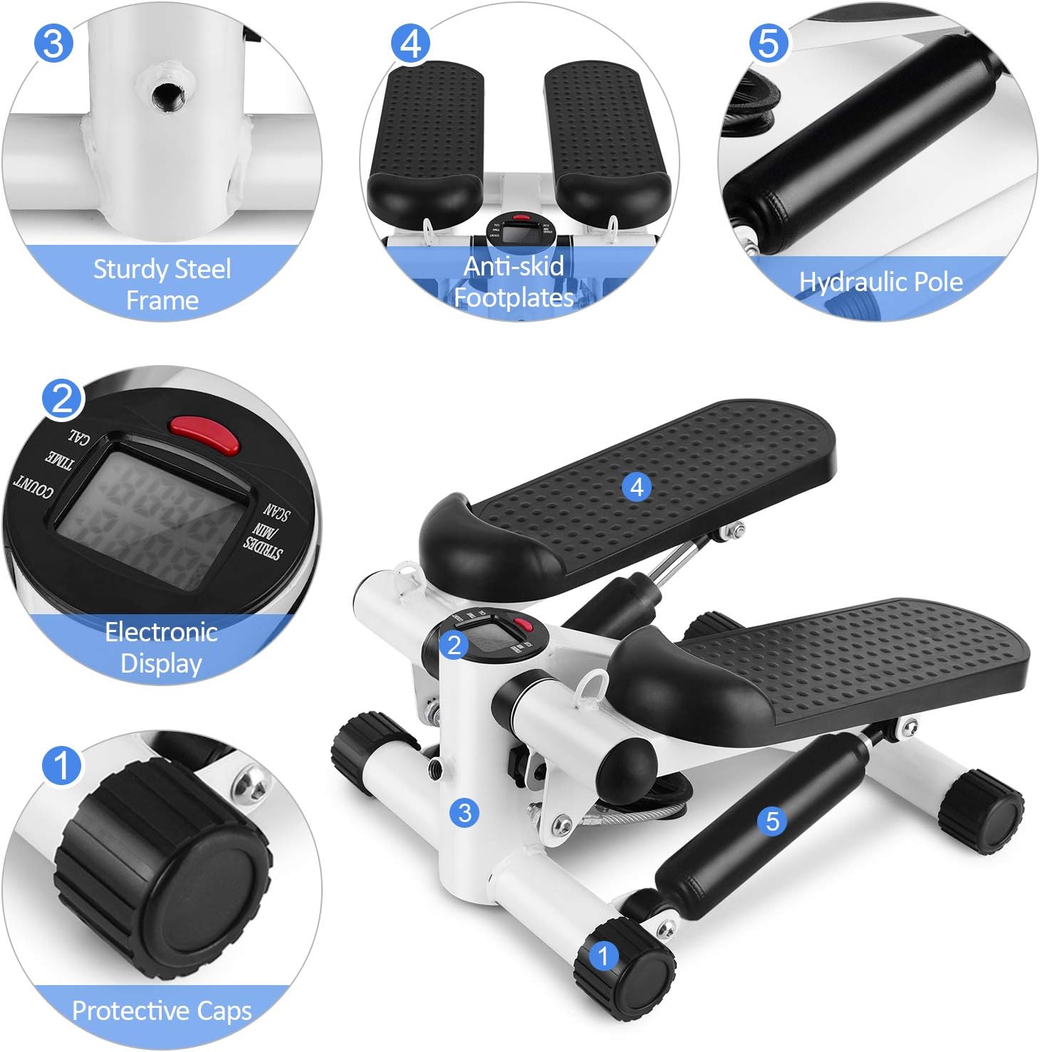 BLAIS Mini Fitness Stepper Pantalla electrónica Equipo de Ejercicio en el hogar con Bandas de Resistencia