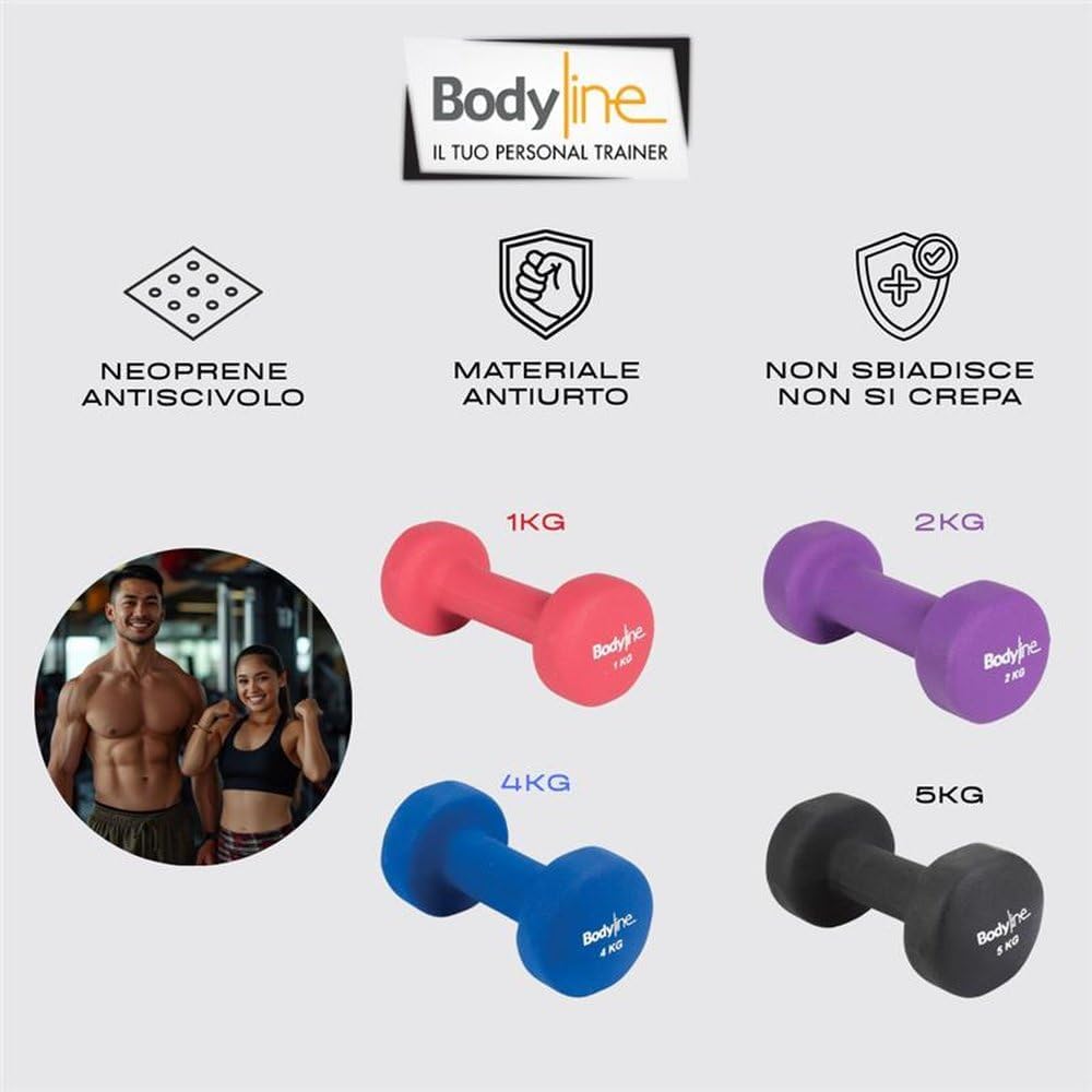 The BODYLINE handlebar, made of cast iron and non-slip neoprene, thanks to the ergonomic surface allows a firm and secure grip during training.