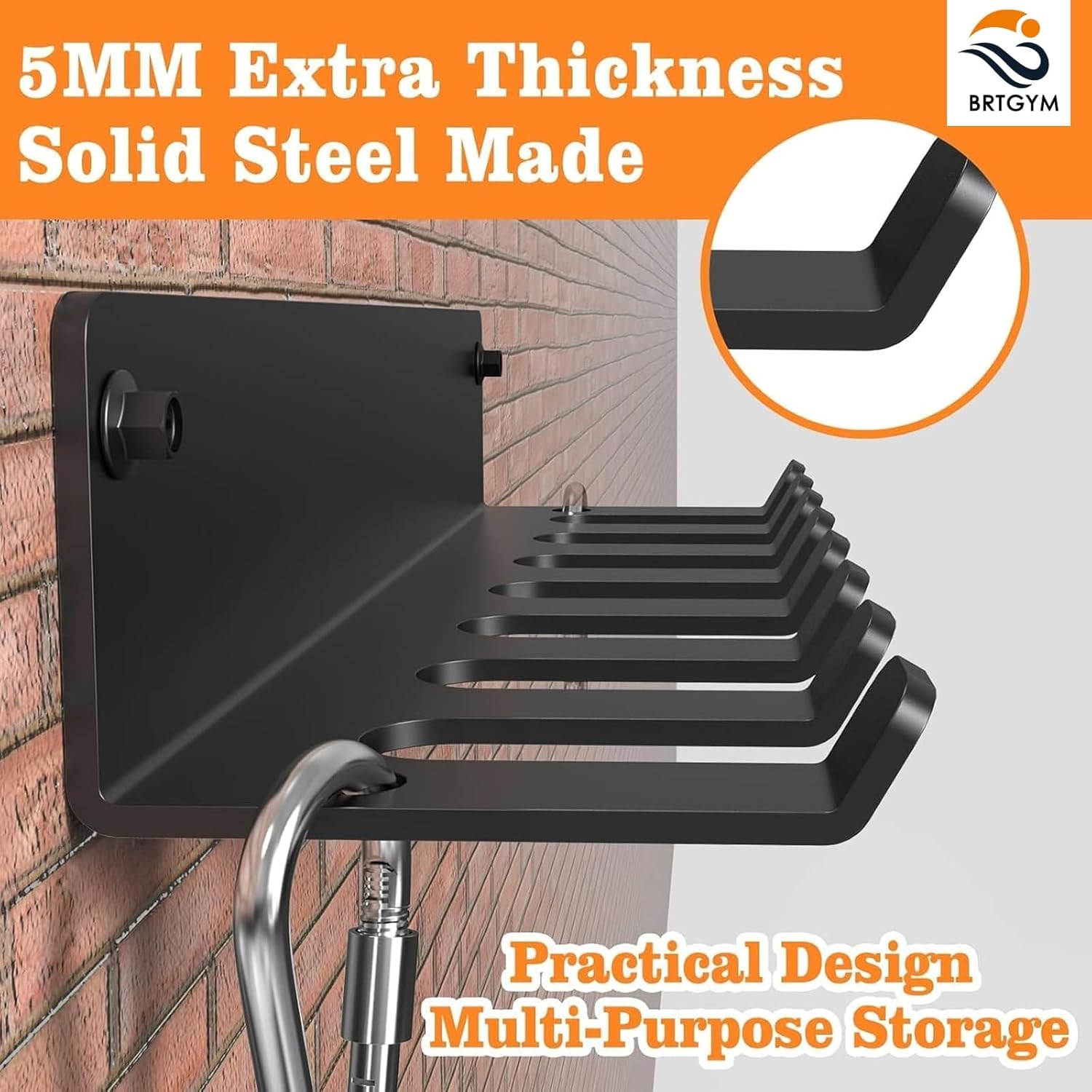 BRTGYM Gym Organizer, Home Gym Accessories Hanger, Wall Mount Hooks for Olympic Bars, Row Handles, Bats or Tools (Electronic Manual Included)