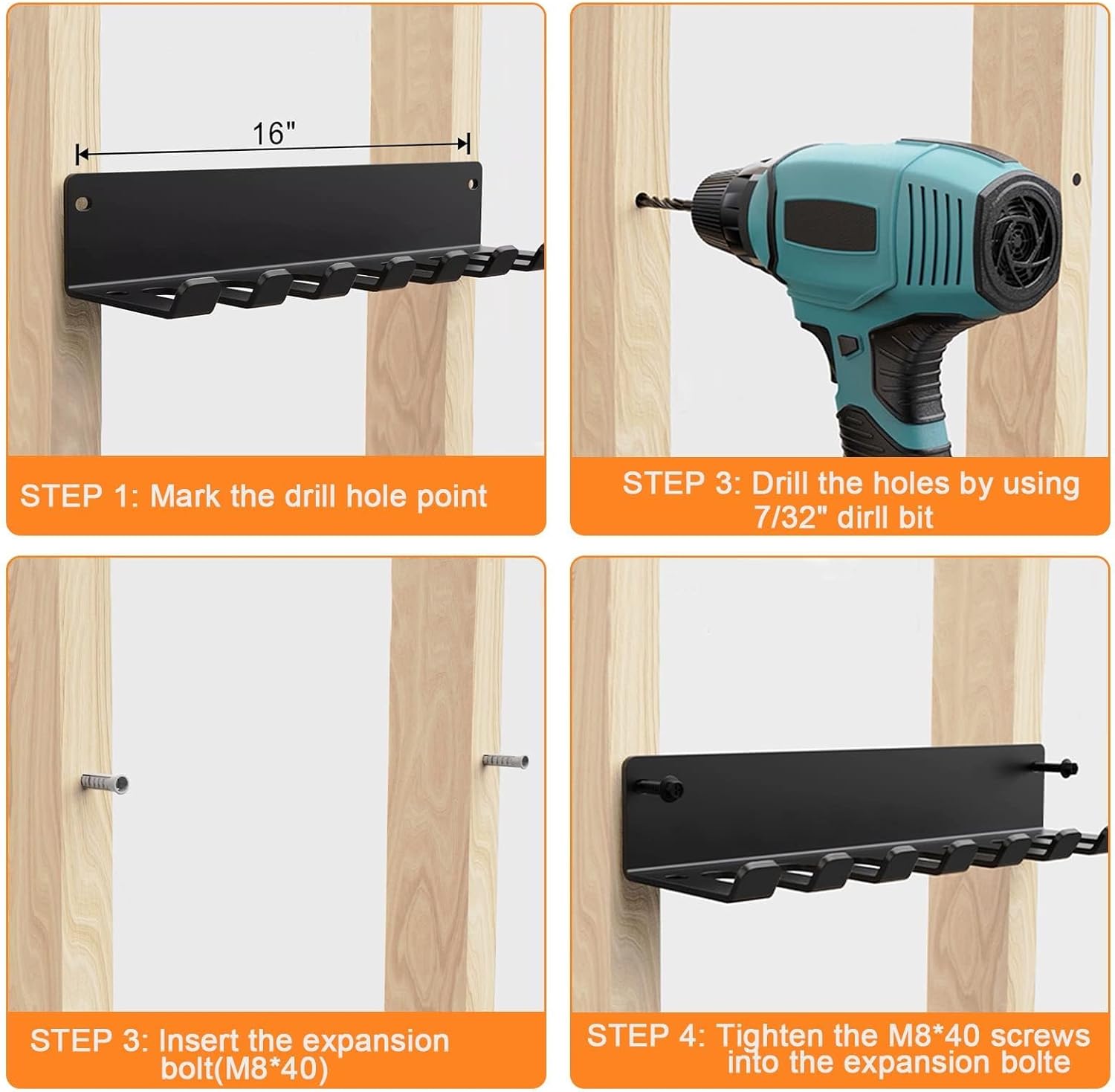 Size:16.7 inches long, 5 inches deep, 3.2 inches wide, 8 prongs. The mounting holes on both versions are 10mm in diameter and are spaced 13.3″ on the center horizontally. Mounting hardware included. Total weight of 6.6 pounds