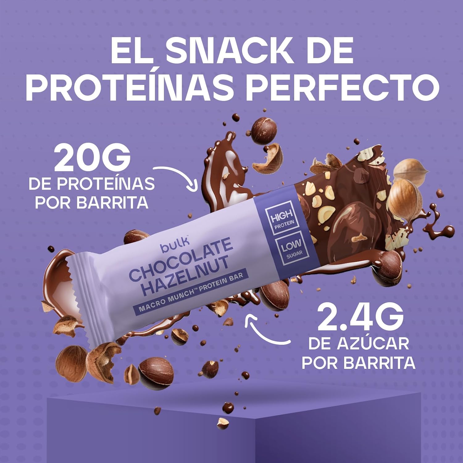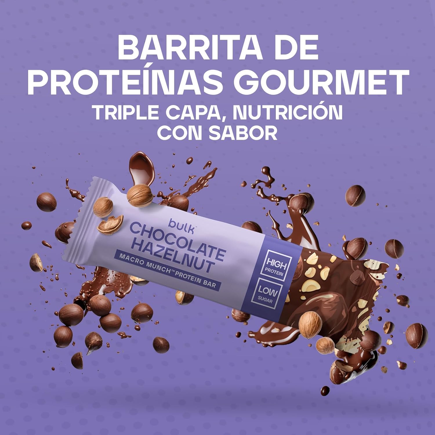 The Bulk Macro Munch Bar is the optimal snack for those looking to combine protein, flavor and comfort. With 20g of protein, low sugar, triple layer and high fiber content – optimal for on-the-go or as a more nutritious alternative to chocolate bars.
