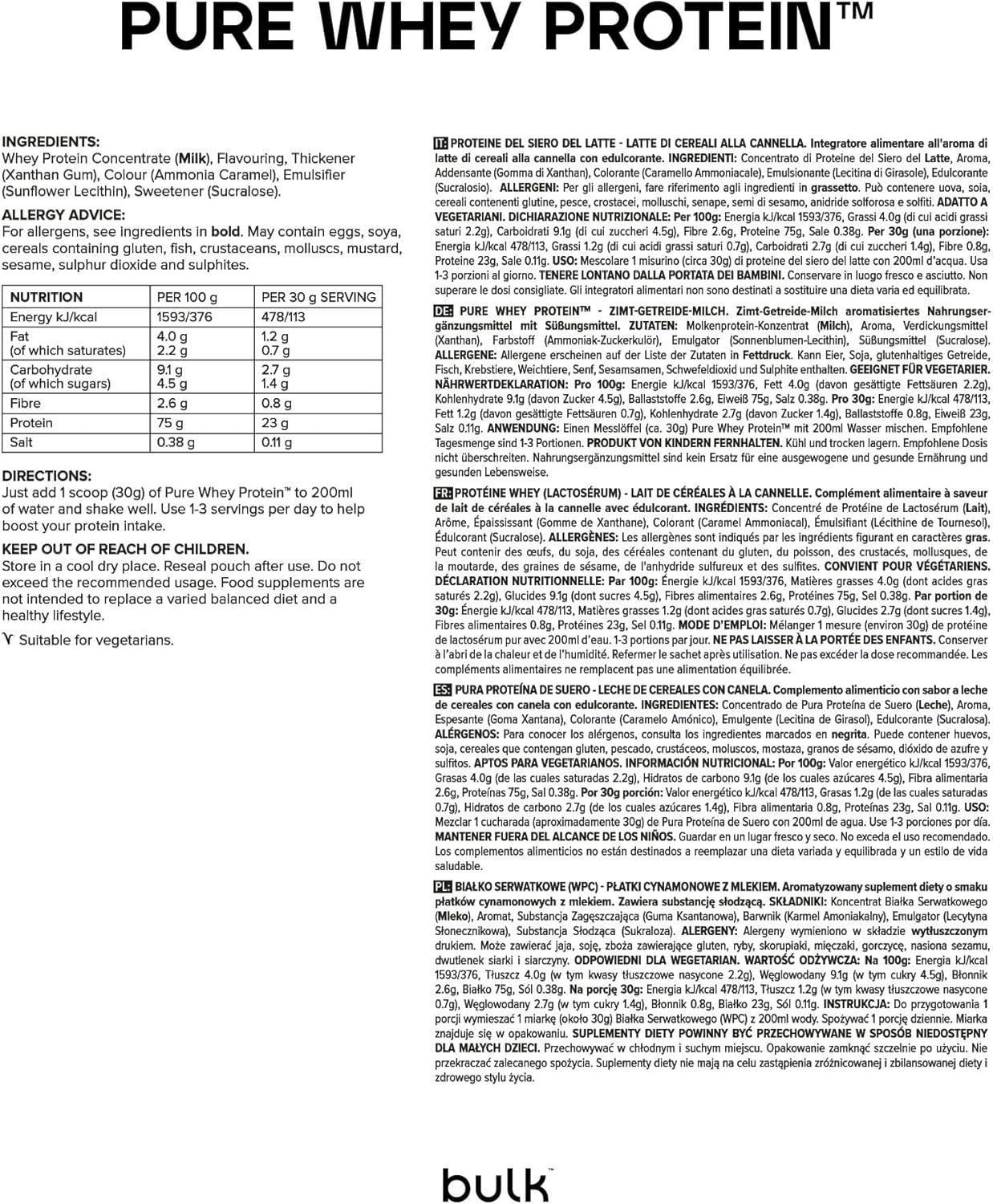 Bulk Pure Whey Protein Powder | Milk with Cinnamon Cereal | 22g Protein and 5g BCAA | Whey Shake Concentrate | Low Sugar | Promotes Muscle Growth and Recovery | 1kg