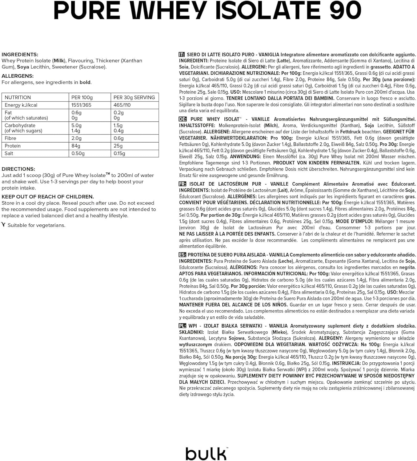 Bulk Whey Protein Isolate, Vanilla, 1 kg, 33 Doses, Low Sugar, Low Fat, to Increase Muscle Mass*, Packaging and Packaging May Vary