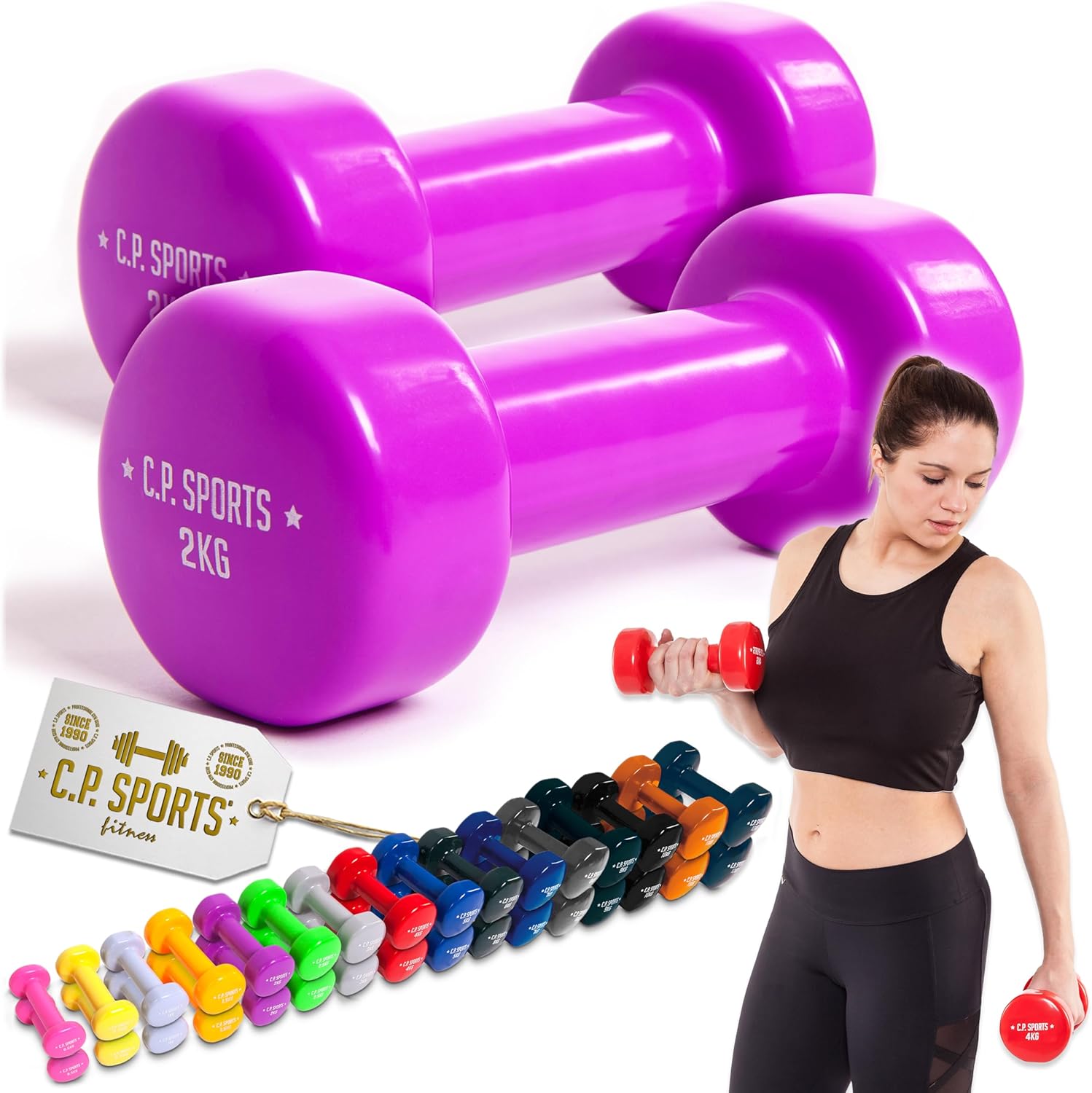 C.P.Sports Dumbbells | Set of 2 Dumbbells – Weights from 0.5kg to 12kg | Dumbbell Set for Sports, Fitness, Gymnastics, Strength Training, Home Gym