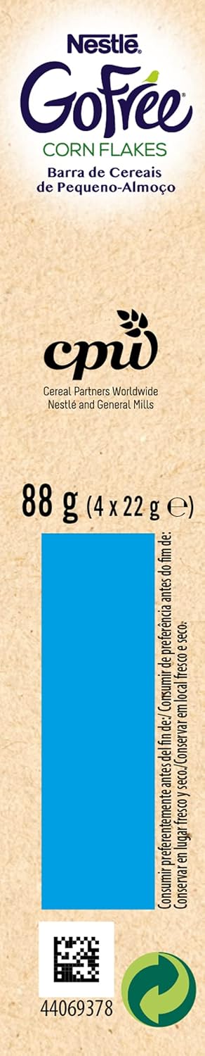 Discover the Go Free Gluten Free Cereal Bar Start your day with a delicious corn flakes bar enriched with B vitamins (B2, B3, B5 and B6) calcium and iron. Delicious energy for an optimal start.