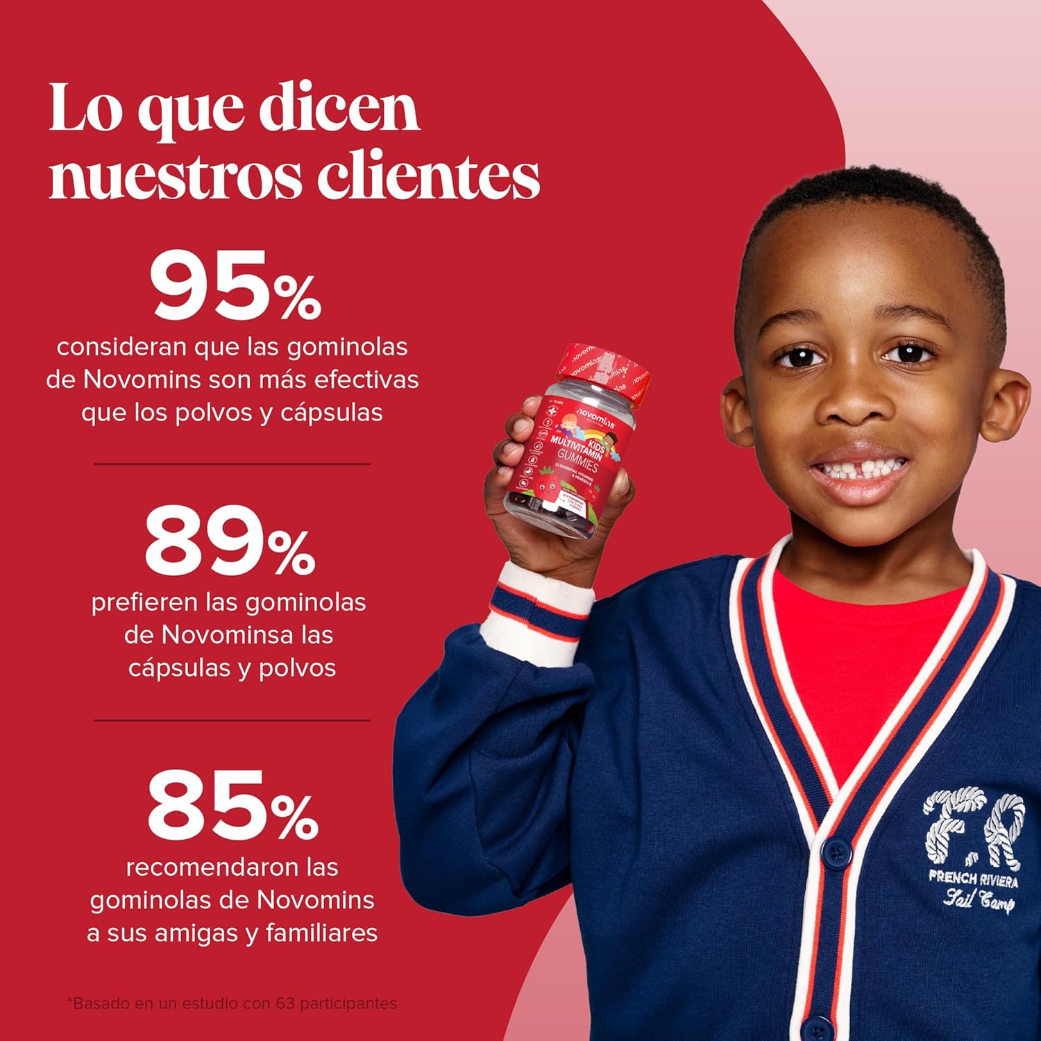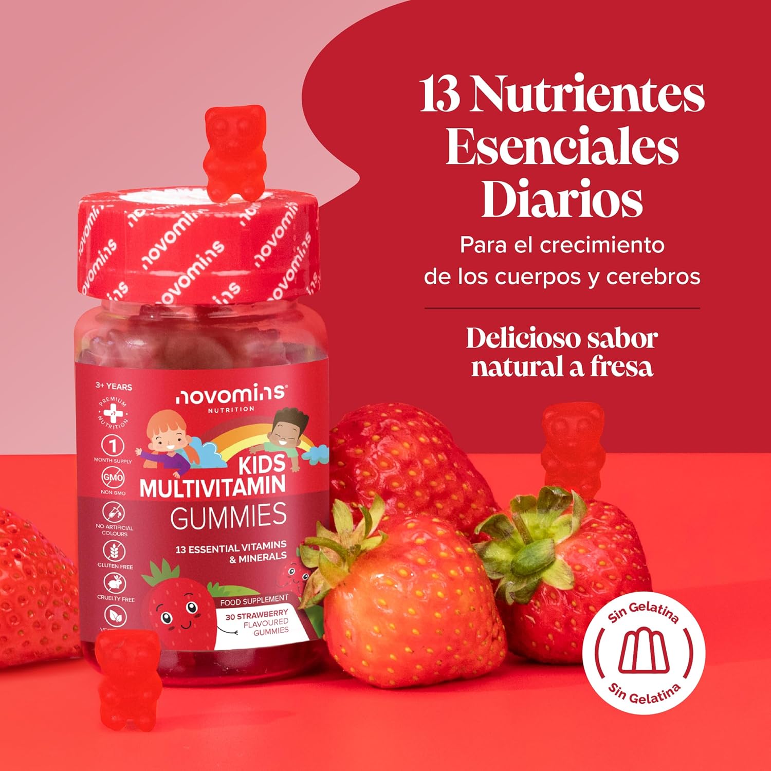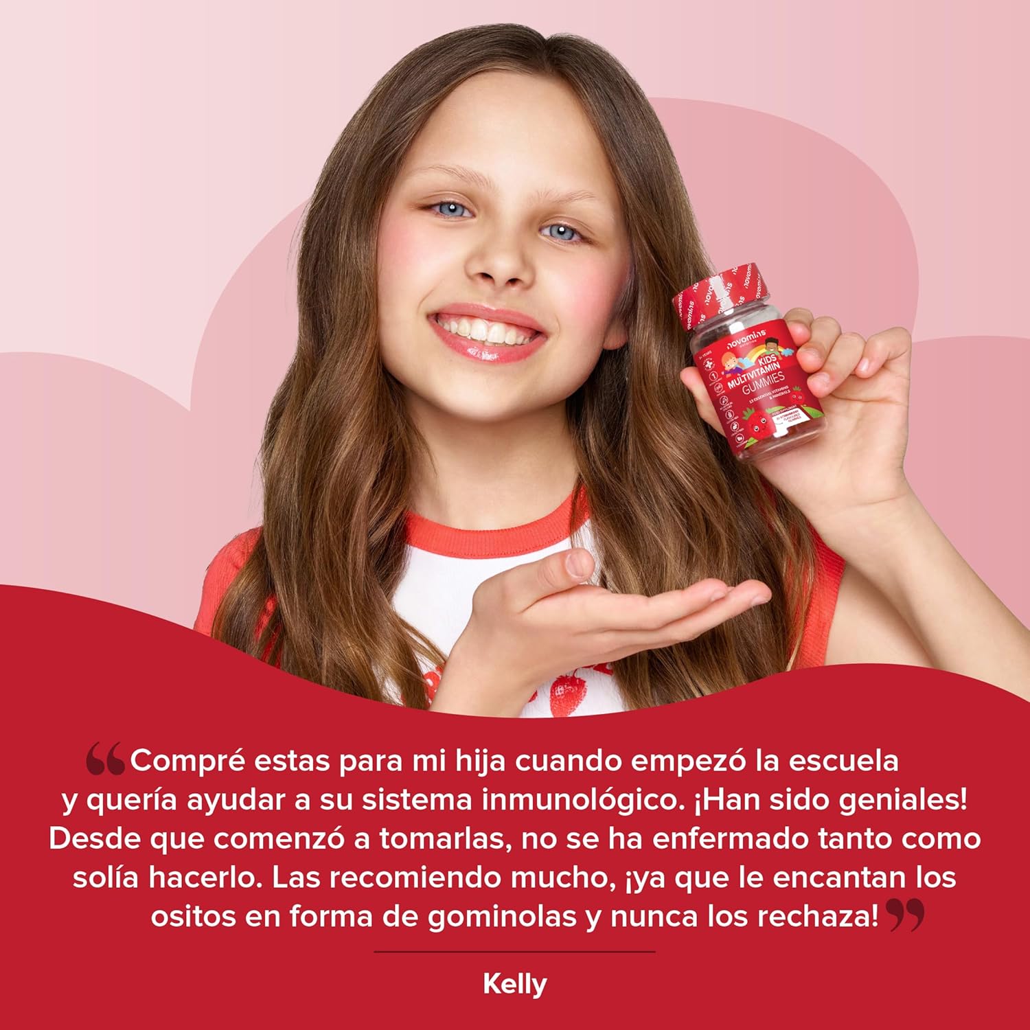 DELICIOUS KIDS VITAMINS IN GOMINOLAS – Our kids vitamins gummies are created to delight all your children’s senses! Our multivitamins are shaped like delicious strawberry gummy bears. Children’s gummies vitamins have no artificial colors, preservatives and are non-GMO. We only use the highest quality ingredients in high potency children’s multivitamin gummies. Encourage an active lifestyle with our gluten-free gummies.