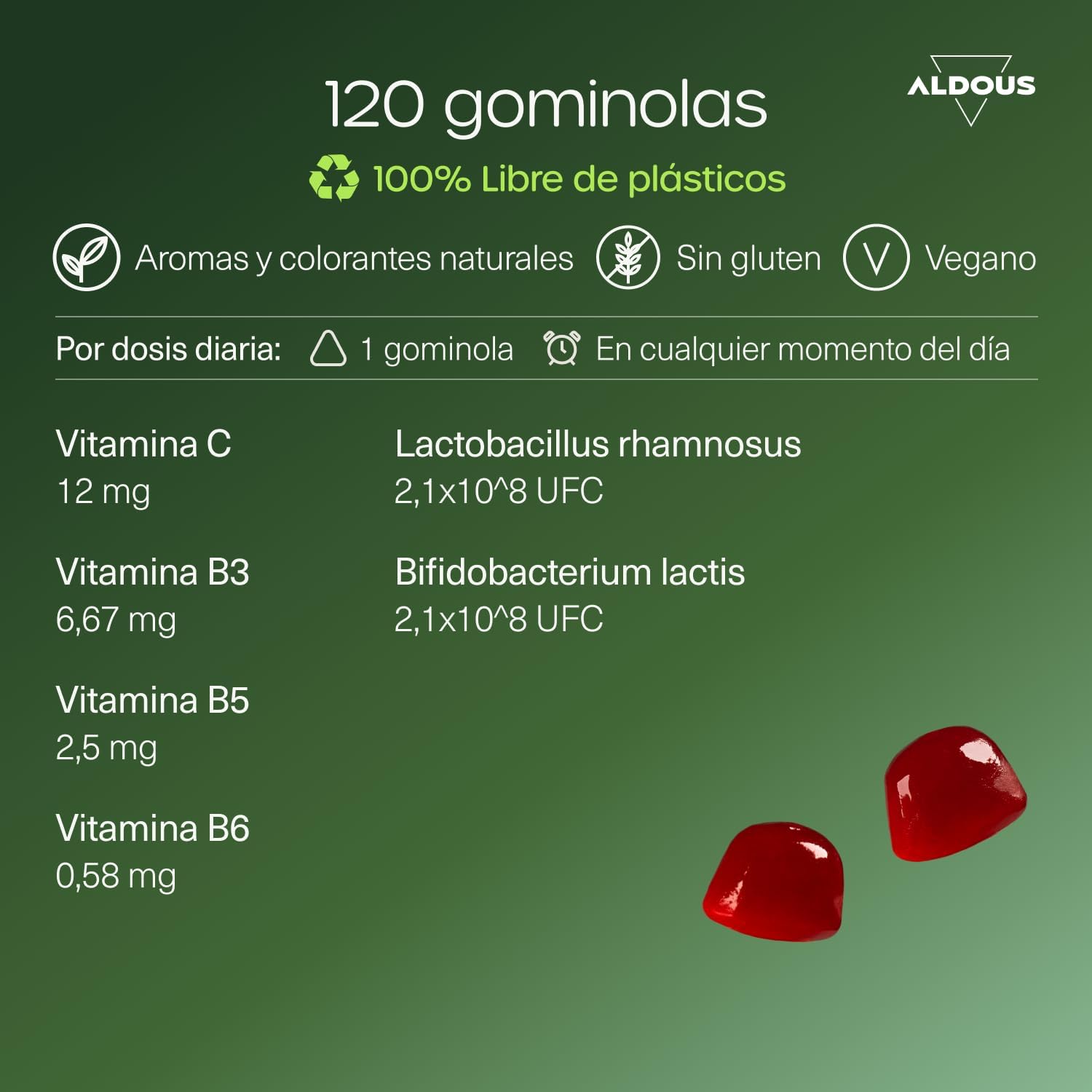 ⭐PROBIOTICS AND VITAMINS GOMINOLS – Aldous multivitamin and probiotic gummies are the multivitamin with probiotics Bifidobacterium and Lactobacillus ideal to promote the absorption of nutrients, normalize intestinal transit and maintain a good state of defenses and the immune system. B vitamins help convert food into energy, repopulate microorganisms and optimize intestinal functions and vitamin C acts as an antioxidant.