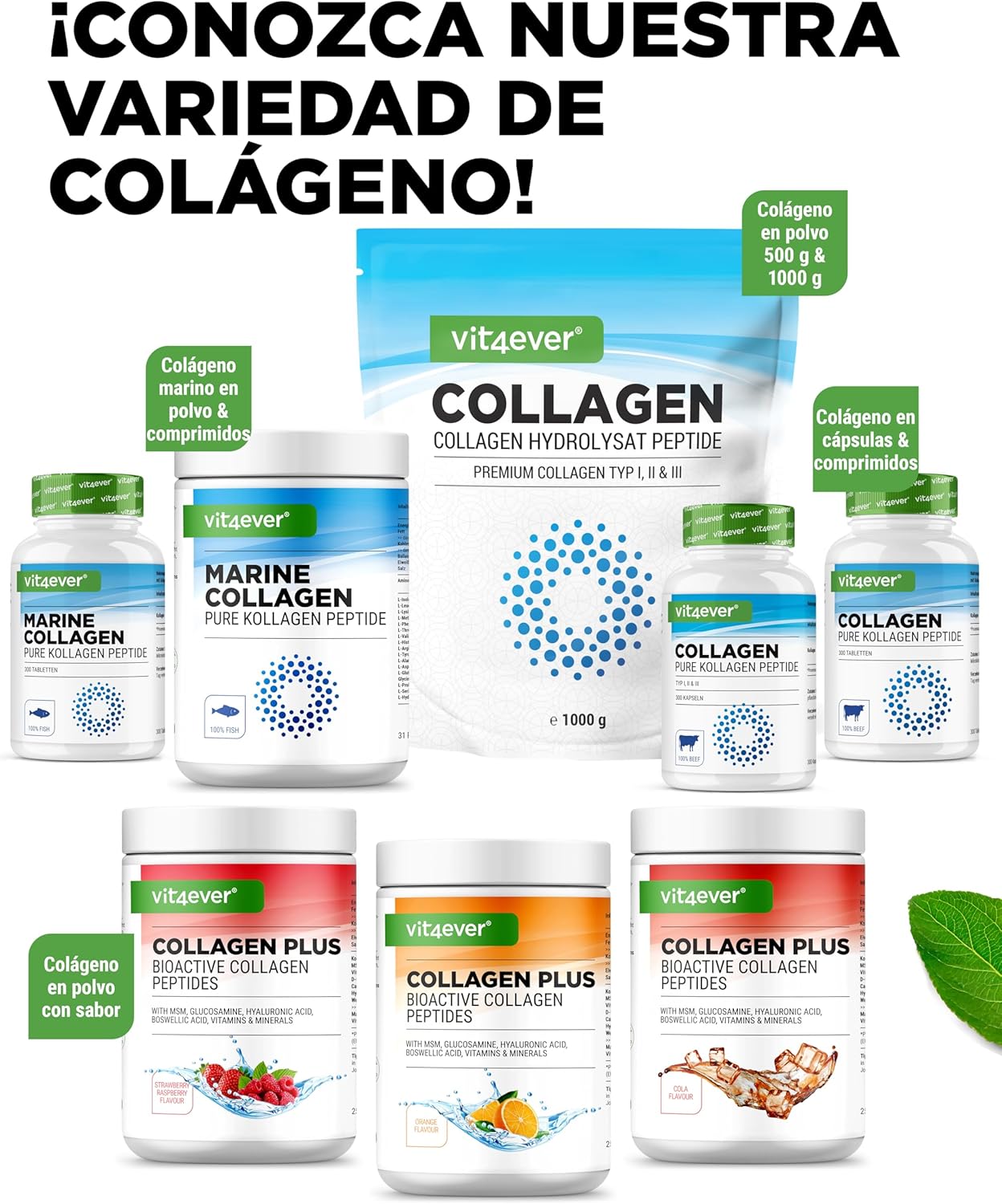 RAW RAW MATERIAL: Our collagen powder and collagen capsules are made from a high quality raw material with a protein content of 93%. Thanks to a balanced amino acid profile focused on glycine, proline and hydroxyproline, it offers an ideal composition. The small molecular size of only 2.0 kDa (2000 Daltons) guarantees particularly good bioavailability and optimal absorption in the body.