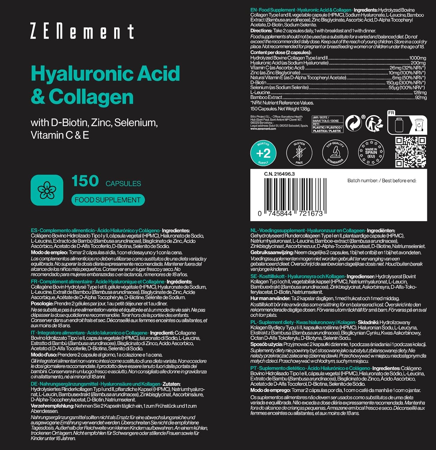ZENEMENT, INSPIRING WELLNESS: Zenement was born in 2017 in Barcelona, with the aim of helping people improve their health and well-being. Inspired by the philosophy “Zen”, our name emerges as a fusion with the “supplement”. In addition, we are part of the Barcelona Health Hub, located in the emblematic Modernist Enclosure of Sant Pau.
