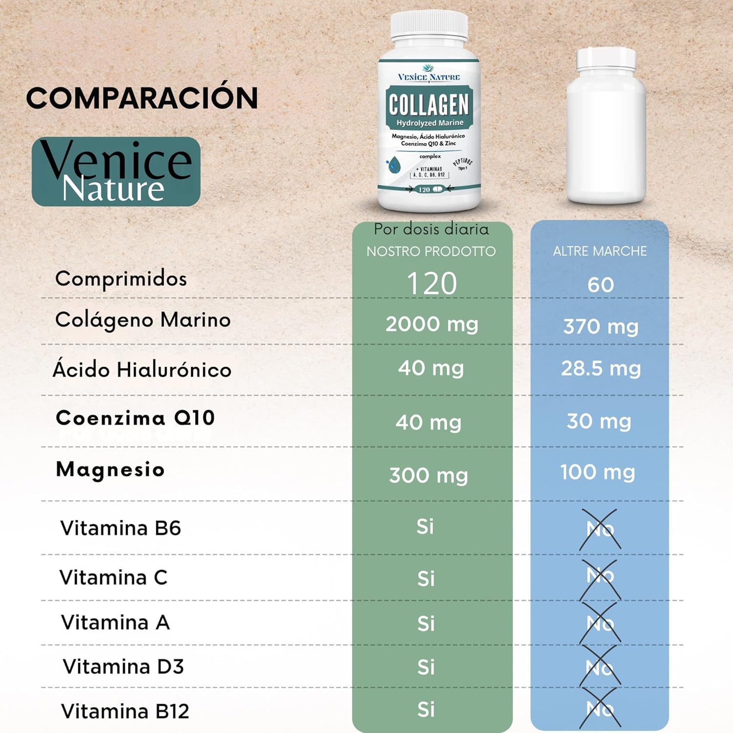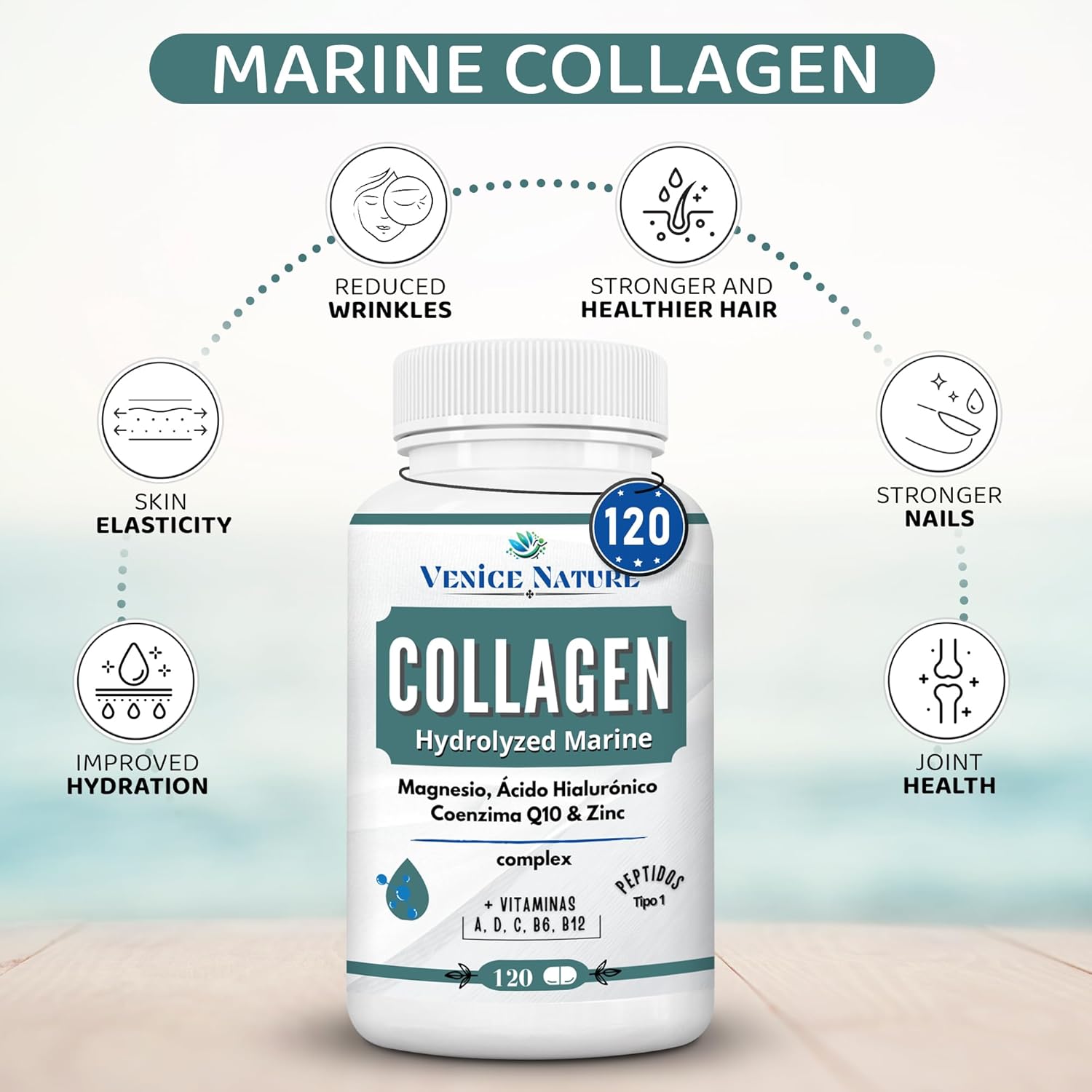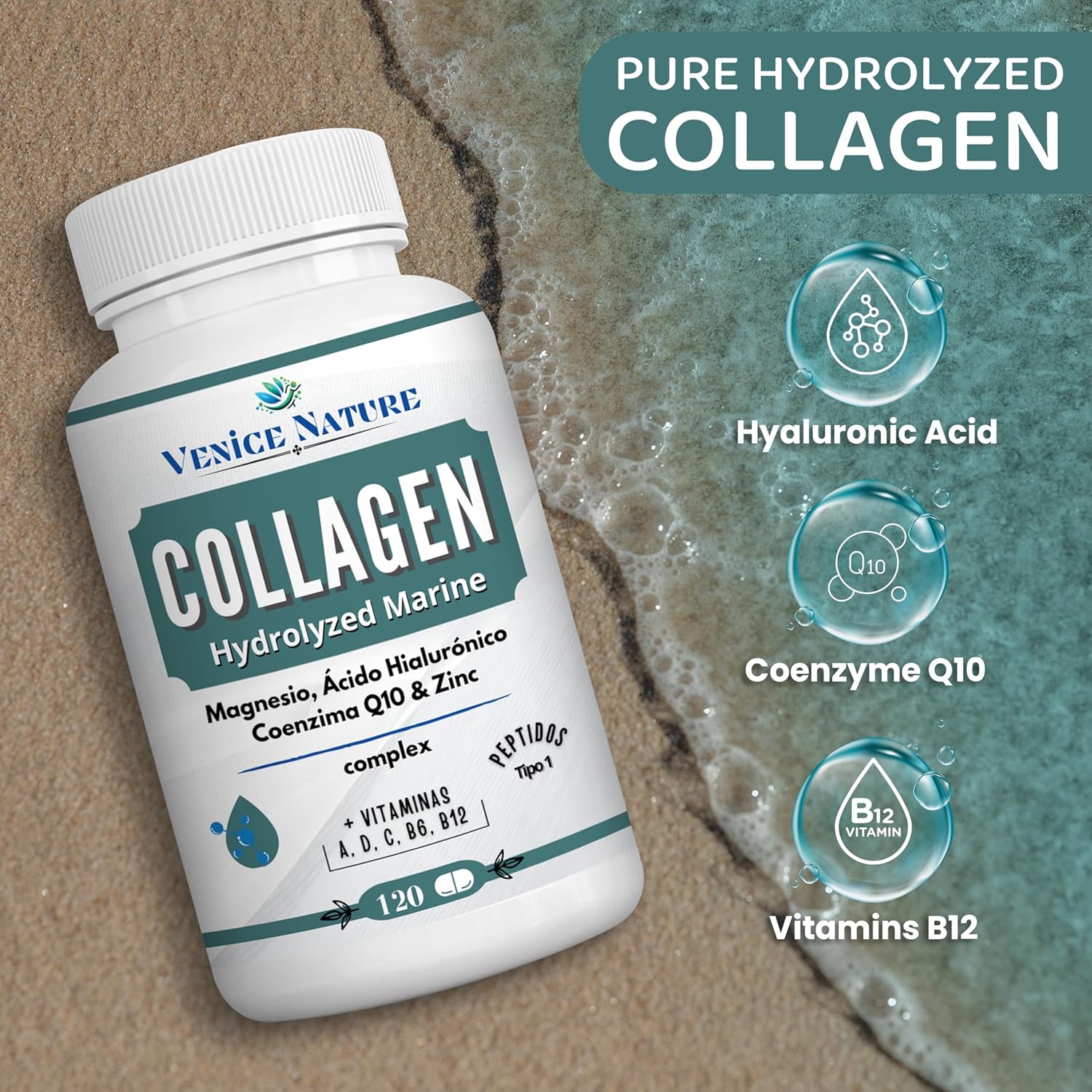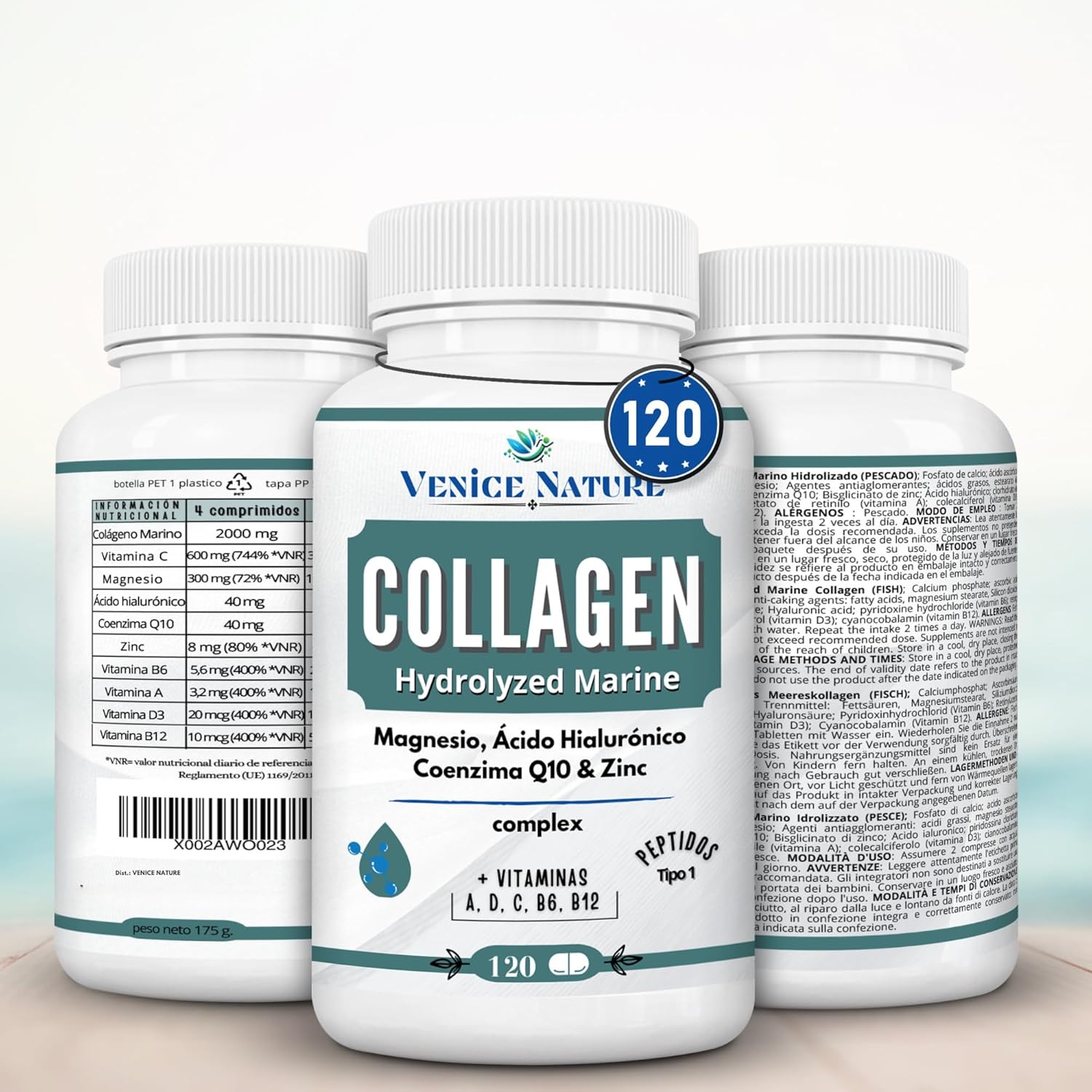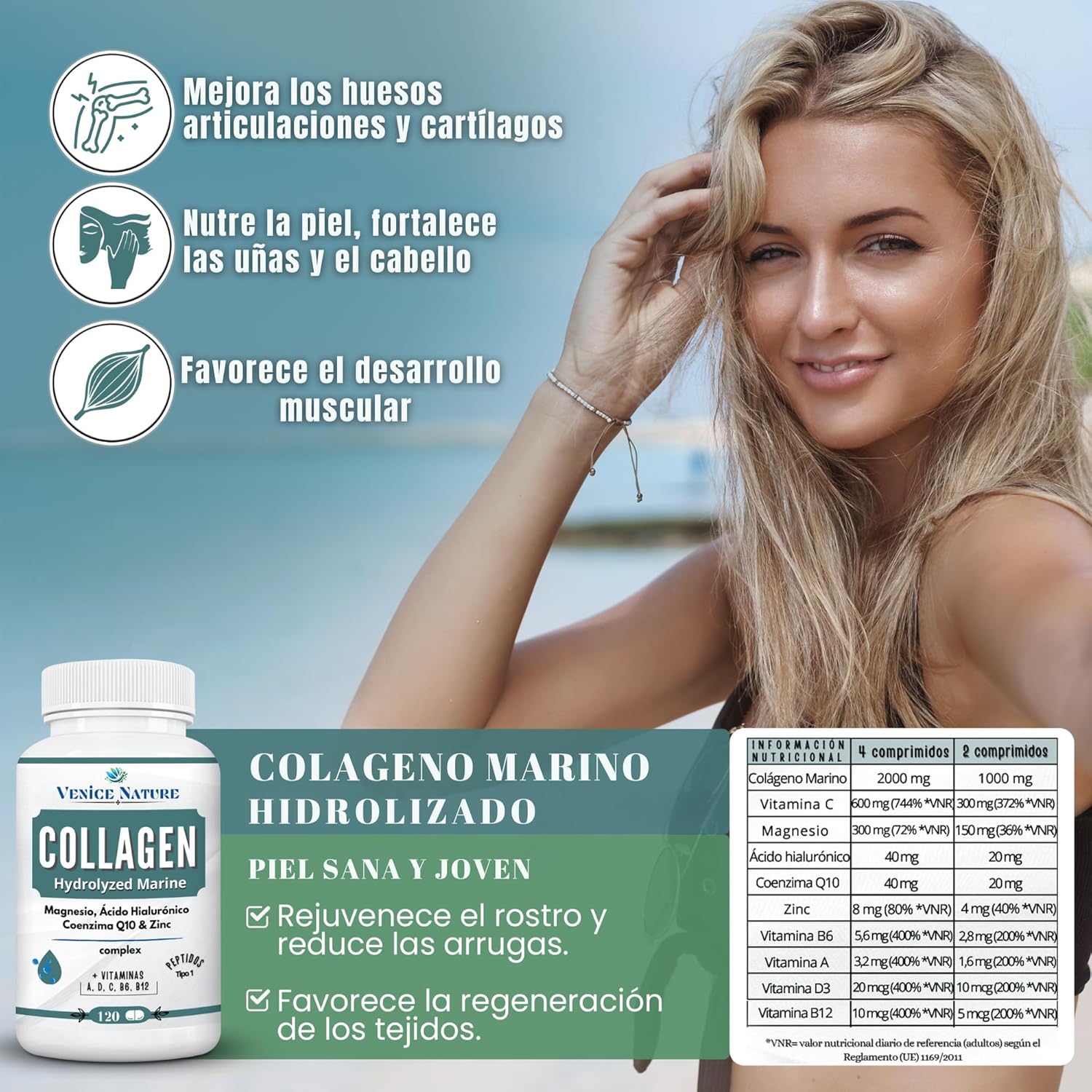 HYDROLYZED MARINE COLLAGEN: VITAMINS FOR HAIR AND SKIN DELAYS AGING – Collagen hydrolyzed with hyaluronic acid, with coenzyme Q10, vitamins A, C, D, B12 and zinc, is the perfect combination to nourish vitamins hair and nails, get hydrated skin, bones. strong and prevent wear of joints and cartilage, delaying the appearance of wrinkles and aging. Our collagen formulation is presented in tablets, thus providing greater concentration and purity to the product. In addition, it contains magnesium, which contributes to normal protein synthesis and supports bone and muscle health.