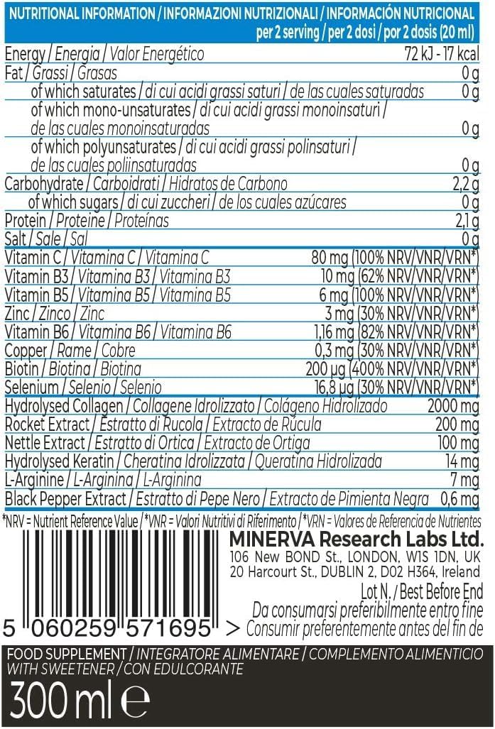 HEALTHIER & STRONGER HAIR: With marine collagen, hydrolyzed keratin, arugula and nettle extract, vitamins and minerals, for visibly healthier, fuller hair