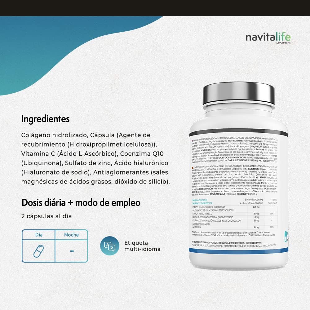 RICH FORMULA IN FUNCTIONAL ACTIVES: Our dose of collagen tablets contains collagen type 1 and 2, hyaluronic acid, vitamin C (which stimulates collagen synthesis), coenzyme Q10 and zinc. A carefully balanced combination with the goal of acting in synergy to strengthen tissues, protect joints, accelerate injury recovery and revitalize the look of your skin.