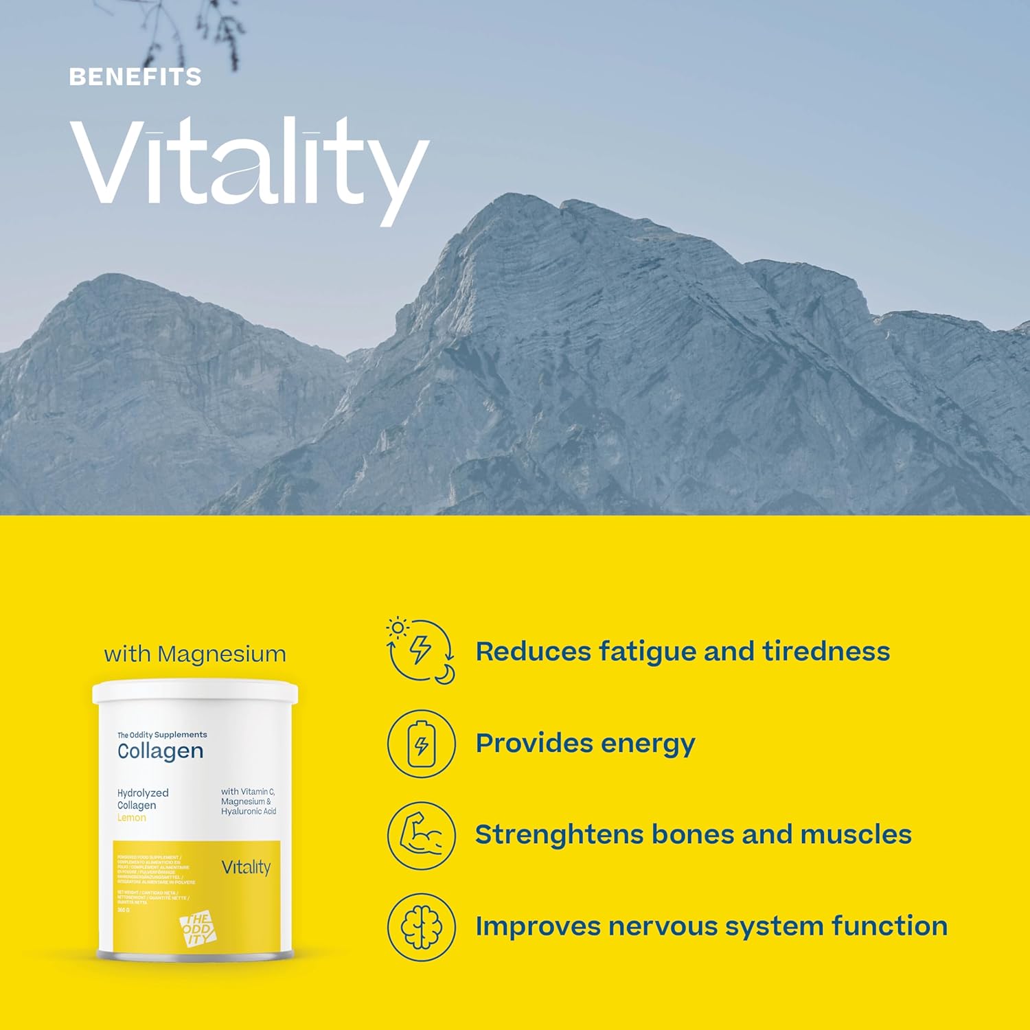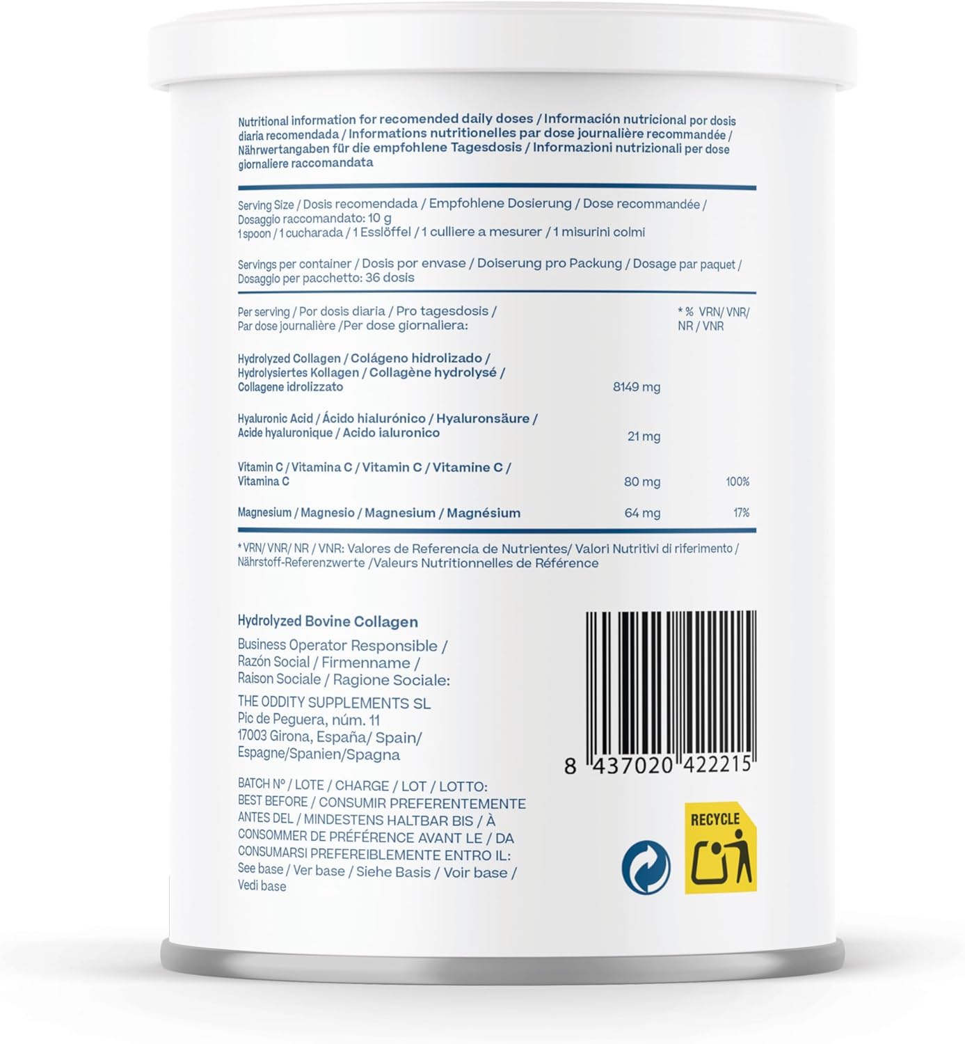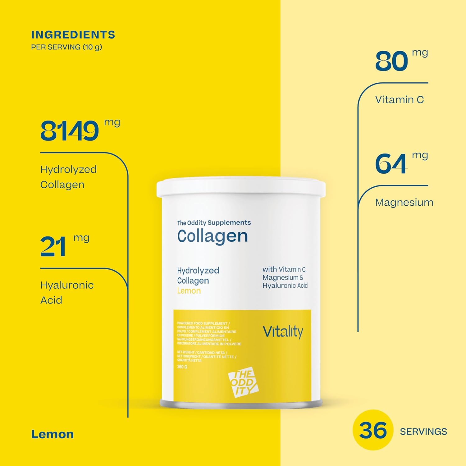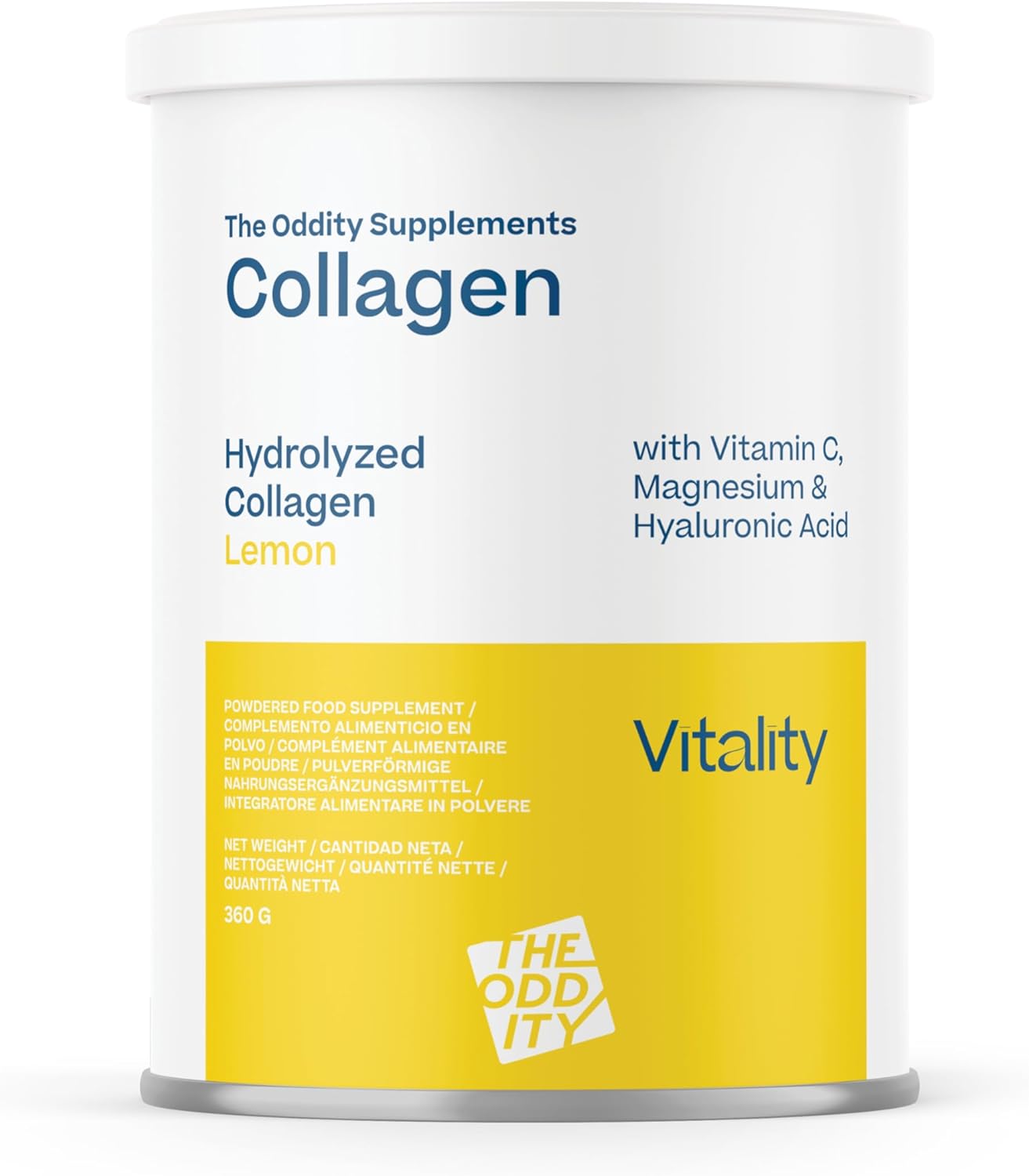 Collagen with Magnesium, Vitmina C and Hyaluronic Acid | Lemon Flavor, 360 g | 36 doses | Hair, Nails, Tendons, Ligaments, Muscles & Joints | Saver Format | THE ODDITY Supplements