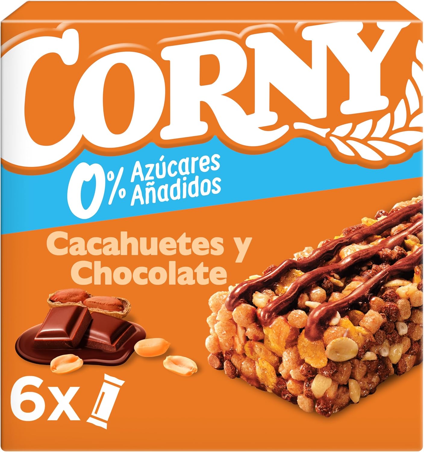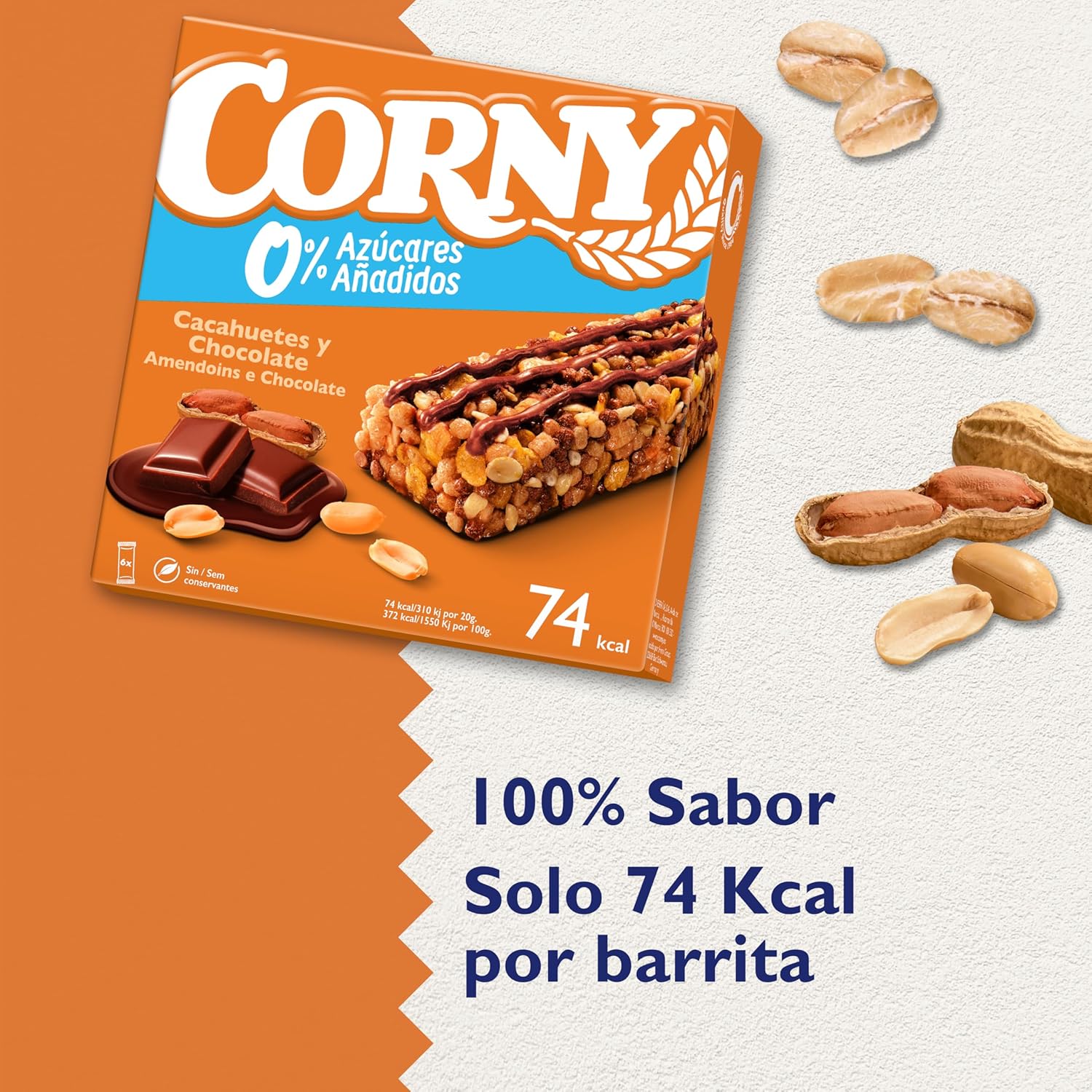 Corny 0%, Peanuts and Milk Chocolate Bar, No Added Sugars, With Whole Grains, Crispy and Delicious Flavor, 6pcs x 20g